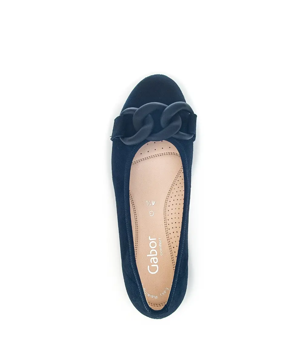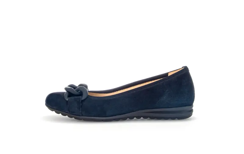 Ontdek de tijdloze elegantie van de Gabor Ballerina's in nachtblauw suede. Deze chique schoenen zijn een perfecte aanvulling op je garderobe, of je nu naar kantoor gaat of een avondje uit. De subtiele matte schakelketting voegt een verfijnde touch toe, terwijl de elastische instap zorgt voor optimaal draagcomfort. De donkerblauwe zool biedt een sportieve twist en maakt deze ballerina's veelzijdig genoeg voor elke gelegenheid.