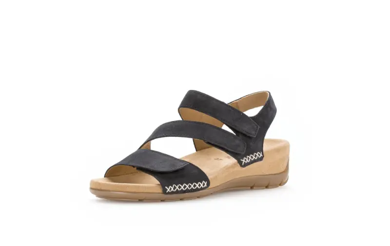 Ervaar het comfort van donkerblauwe Gabor sandalen met verstelbare banden en grof stiksel. De handige klittenbandsluiting zorgt voor een perfecte pasvorm. Stijlvol bruin accentueert het ontwerp, terwijl de 'Best Fitting' technologie en een subtiele hak van 20 mm je voeten de hele dag door ondersteunen. Kies voor kwaliteit en comfort met deze elegante schoen.