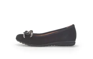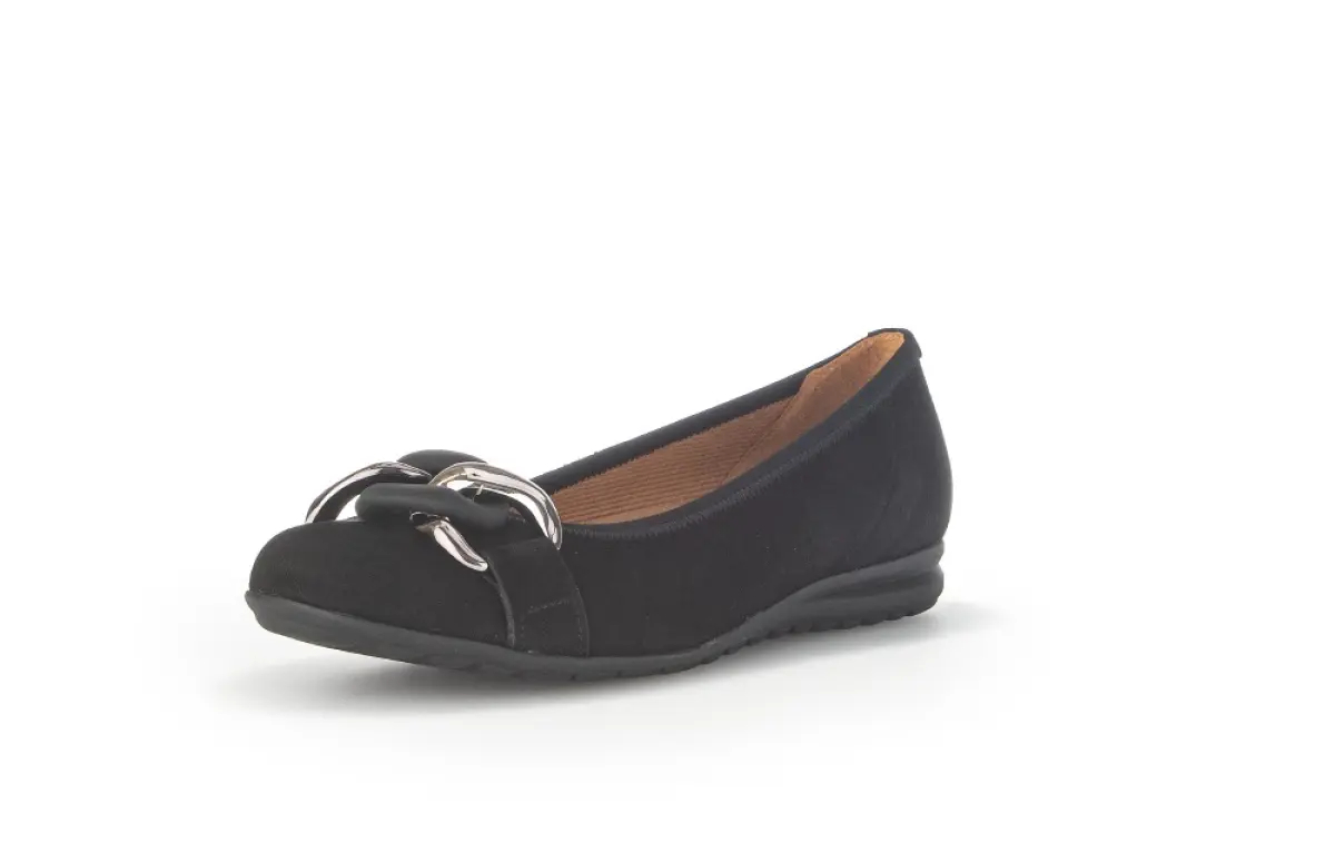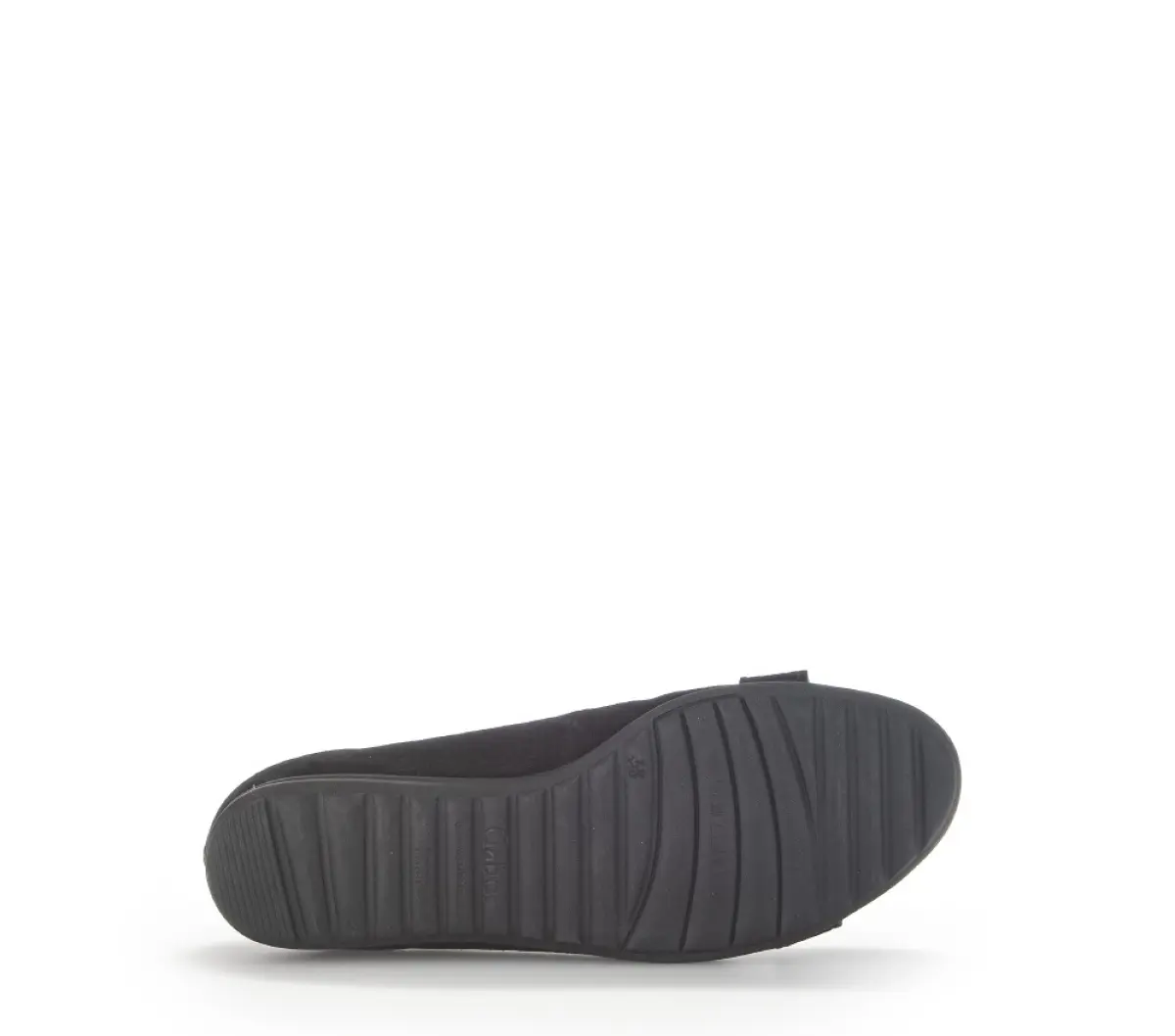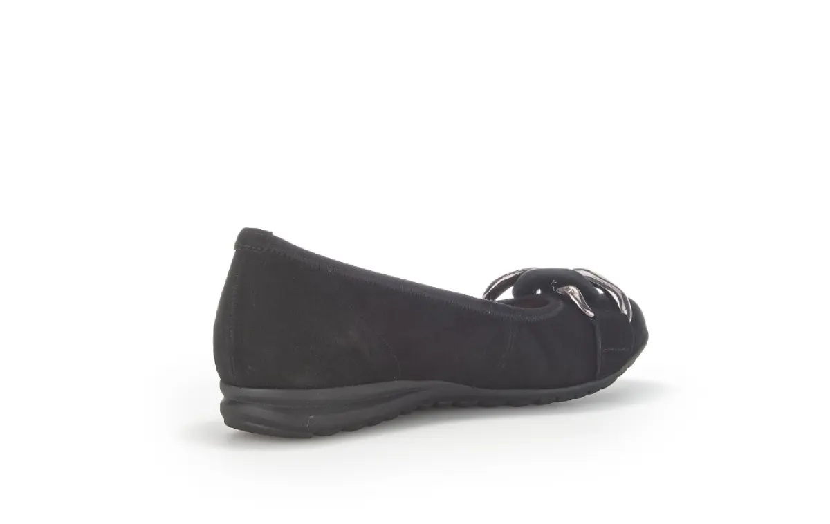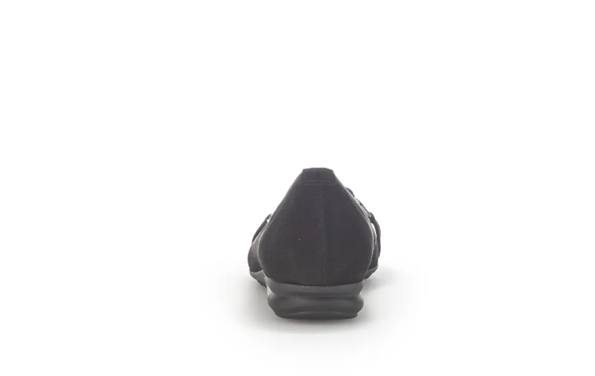 Ontdek de ultieme combinatie van stijl en comfort met deze Gabor suède elastische ballerina. De schoen is vervaardigd uit zwart suède, wat niet alleen een luxe uitstraling biedt, maar ook een zachte afwerking. Dankzij de elastische instap ervaart u een perfecte pasvorm, zodat u moeiteloos in- en uitstapt, zonder concessies te doen aan comfort.