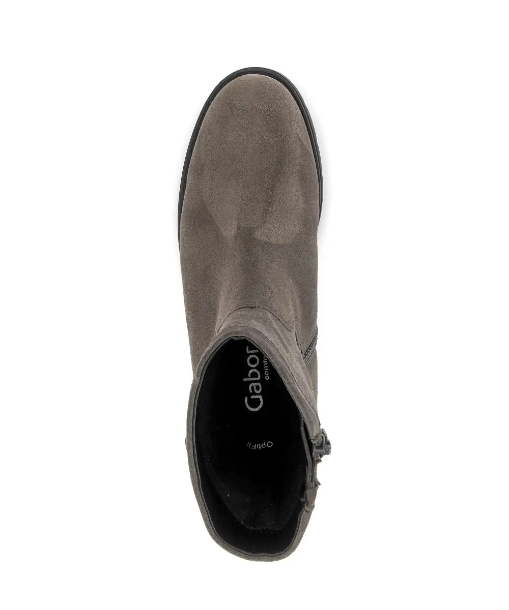 Maak kennis met de stoere maar elegante Gabor enkellaars van taupe velour, perfect voor de vrouw die stijl en comfort zoekt. Het gladde, soepele velour voelt zacht aan en sluit mooi om de voet. Deze laars in wijdte G biedt extra ruimte zonder in te leveren op uitstraling. Dankzij de ritssluiting trek je ze makkelijk aan en uit. Voeg dit veelzijdige paar vandaag nog toe aan je garderobe en bestel direct online.
