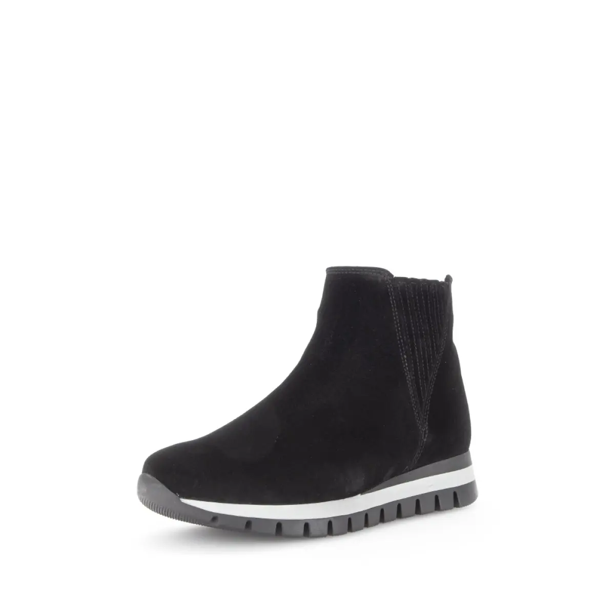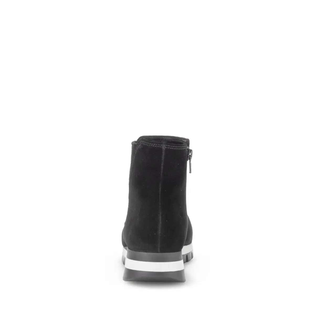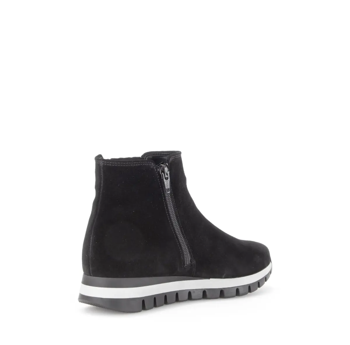 Deze zwarte enkellaars van velour in wijdte H biedt een heerlijk ruim en zacht gevoel, perfect voor bredere voeten. De rits aan de binnenzijde van de laars zorgt voor een soepele instap. De sportieve zool geeft deze laars daarnaast een moderne, casual look zonder in te leveren op comfort. Combineer hem met een slim fit jeans of een gebreide jurk voor een nonchalante en stijlvolle herfstoutfit. Ideaal voor dagelijks gebruik dankzij de lichte loopzool en het ademende materiaal van suède.