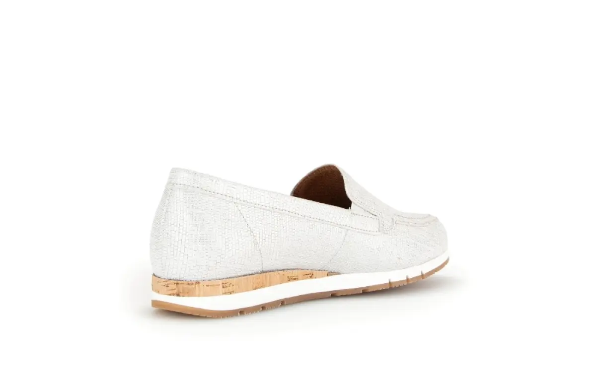 Deze beige mocassin van slangenprint geeft je outfit een frisse en elegante uitstraling terwijl je geniet van het zachte draagcomfort dat typisch is voor Gabor. Het fijne reliëf in de slangenprint zorgt voor een luxueuze look die toch subtiel blijft waardoor je deze mocassin makkelijk combineert met zowel casual als meer geklede outfits. De lichte beige tint versterkt het veelzijdige karakter van de schoen en past mooi bij zachte kleurtonen of luchtige zomerse combinaties. Dankzij de wijdte G krijgt je voet extra ruimte zodat ook een iets bredere voet comfortabel meebeweegt. Het losse voetbed maakt het eenvoudig om eigen inlegzolen te gebruiken wat handig is wanneer je extra ondersteuning nodig hebt. De flexibele zool met een kurkaccent geeft de mocassin een trendy en natuurlijk effect en biedt tegelijk een aangename demping zodat elke stap licht en soepel aanvoelt. Door de combinatie van stijl, comfort en een moderne afwerking wordt dit een mocassin waarop je elke dag kunt vertrouwen.