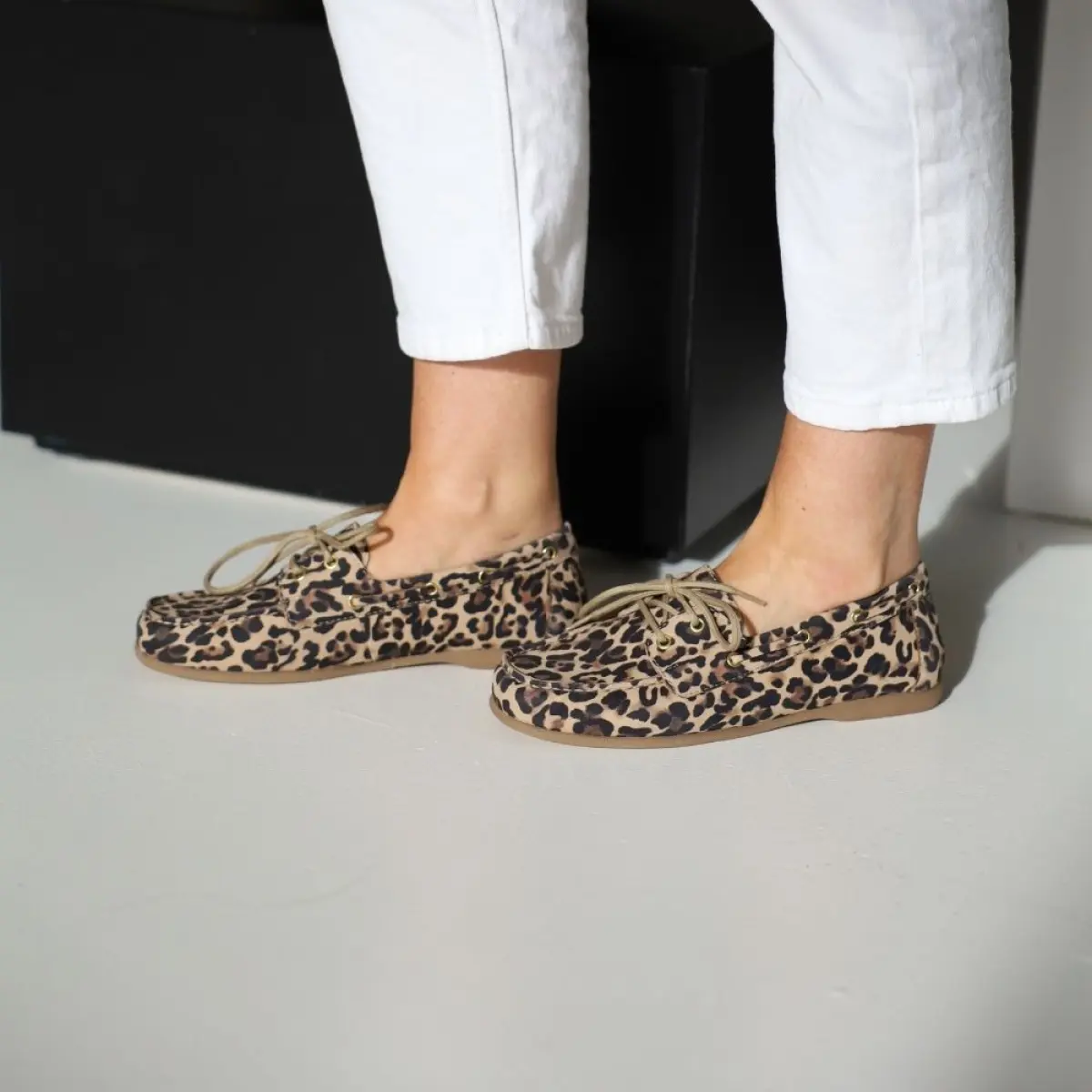 Deze Gabor mocassin van donkerbruin nubuck met panterprint is een stijlvolle blikvanger die comfort en elegantie moeiteloos samenbrengt. Het zachte nubuck vormt zich soepel naar je voet en voelt aangenaam aan tijdens het dragen. De fijne veterdetails en goudkleurige accenten geven de mocassin een verfijnde uitstraling die elke outfit een chique touch geeft. Dankzij de Best Fitting wijdte F geniet je van extra ruimte bij de voorvoet, waardoor je de hele dag ontspannen blijft lopen. Het vaste voetbed biedt lichte ondersteuning en een zachte demping, ideaal voor dagelijks gebruik. De panterprint zorgt voor een speelse, modieuze twist en combineert prachtig met effen tinten voor een stijlvolle en evenwichtige look.