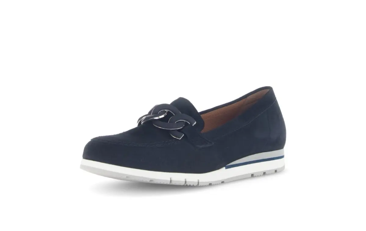 Geef je garderobe een stijlvolle upgrade met deze donkerblauwe Gabor nubuck instapper. Het suede voelt zacht aan en biedt een luxe uitstraling. De elegante schakel op de wreef voegt een eigentijds detail toe, terwijl de comfortabele, lichtgewicht zool zorgt voor langdurig draagplezier. Perfect te combineren met zowel casual als zakelijke outfits. Deze instapper is dé keuze voor dames die een mix zoeken van comfort en verfijning.