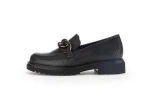 Deze nachtblauwe loafer van soepel kalfsleer combineert tijdloze klasse met moderne details. De diepe kleur straalt rust en verfijning uit, perfect voor de herfstgarderobe. Dankzij de royale wijdte H en de zachte lederen voering zit deze instapper als gegoten, ook bij iets bredere voeten. De chunky profielzool zorgt voor grip en stabiliteit, terwijl de goudkleurige schakel een stijlvolle blikvanger vormt. Een veelzijdige schoen die comfort en elegantie moeiteloos verenigt. Draag deze instapper onder een pantalon of jurk voor een verzorgde, hedendaagse look. Ontdek nu zelf waarom deze loafer zo geliefd is en bestel vandaag nog.