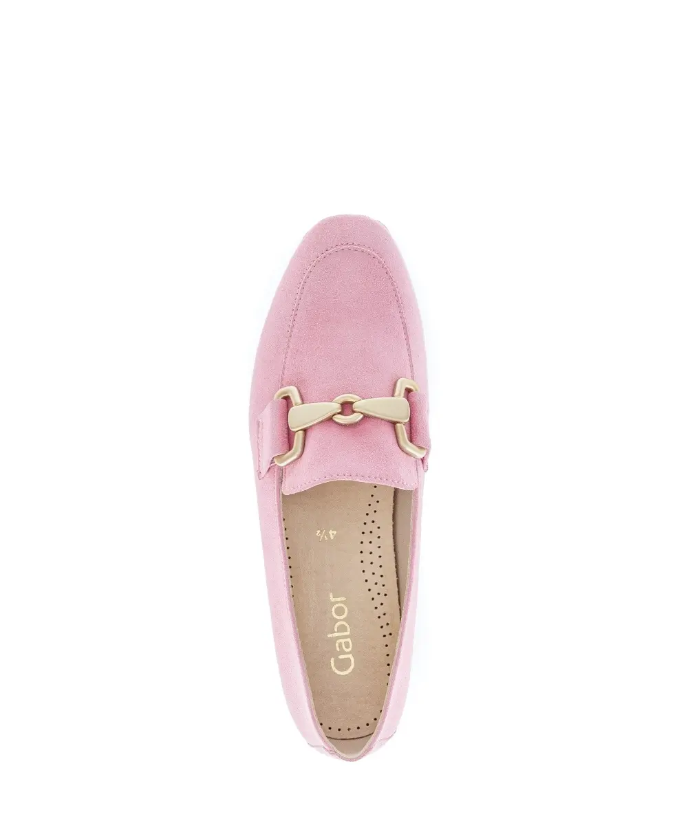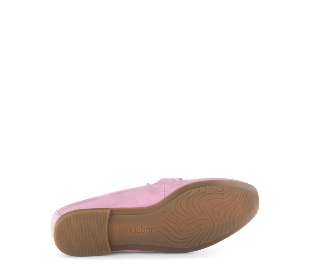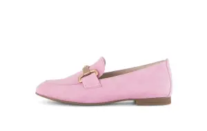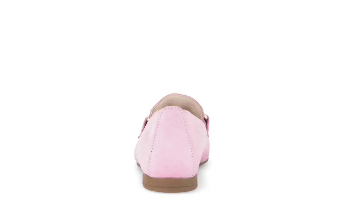 Deze Gabor mocassin van roze suède combineert elegante eenvoud met het vertrouwde comfort van Gabor. Het zachte suède voelt luxueus aan en sluit soepel rond je voet, terwijl de goudkleurige gesp op de wreef zorgt voor een vrouwelijke, verfijnde toets. Dankzij het vaste voetbed geniet je de hele dag van ondersteuning en een ontspannen loopgevoel. De Best Fitting wijdte F geeft je wat extra ruimte bij de voorvoet, zodat de mocassin perfect aansluit zonder te knellen. De zachte rozetint laat zich moeiteloos combineren met lichte jeans, een luchtige jurk of een elegante broek. Een veelzijdige mocassin voor wie stijl, kwaliteit en comfort wil samenbrengen in één paar schoenen.