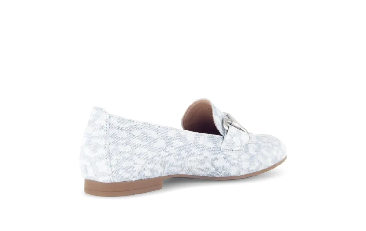 Deze Gabor loafers in lichtblauw combineren een moderne dierenprint met een klassiek silhouet. Het zachte nubuck zorgt voor een luxe uitstraling en ultiem draagcomfort, terwijl de subtiele gespdetail een stijlvolle touch toevoegt.