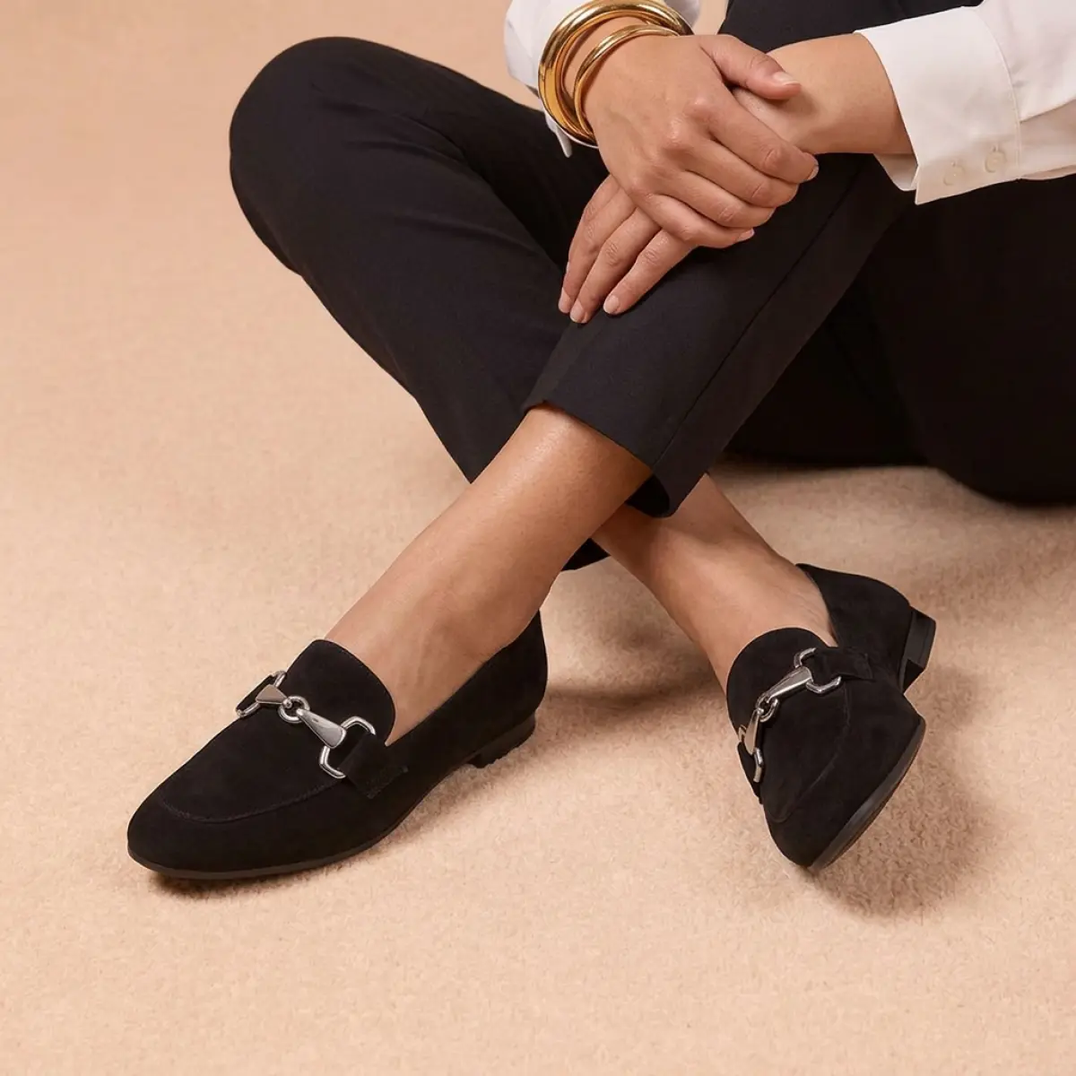 Deze Gabor loafer van zwart suède is een tijdloze keuze voor wie houdt van elegantie en dagelijks comfort. Het zachte suède voelt soepel aan en vormt zich mooi naar je voet, terwijl de zilverkleurige gesp op de wreef zorgt voor een subtiele, chique toets. Het vaste voetbed geeft natuurlijke ondersteuning, ideaal voor lange dagen waarop je veel staat of wandelt. Dankzij de Best Fitting wijdte F krijg je extra ruimte bij de voorvoet, waardoor de loafer prettig aansluit zonder te knellen. De platte, flexibele zool zorgt voor stabiliteit en een zachte afwikkeling bij elke stap. Deze zwarte loafer past moeiteloos bij zowel een nette broek als een casual jeans en is een perfecte mix van stijl, draaggemak en kwaliteit.