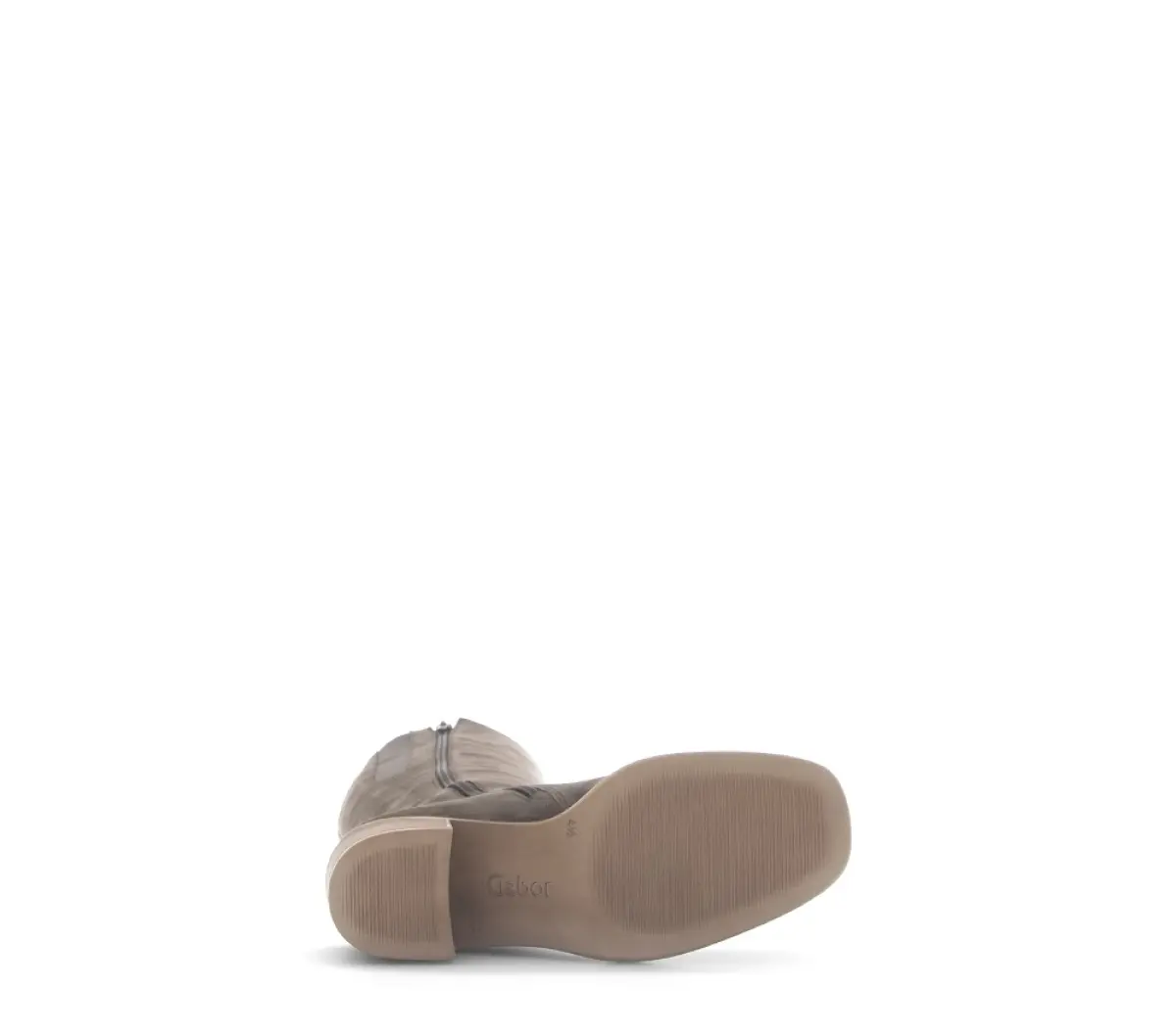 Deze lange Gabor laars van taupe velour in schachtwijdte M combineert moeiteloos vrouwelijke elegantie met dagelijks comfort dankzij de wijdte F (Best Fitting). Het zachte velour voelt zacht aan en vormt zich naar je been voor een luxe pasvorm, terwijl de stabiele blokhak net dat beetje extra lengte en houding geeft zonder in te leveren op draaggemak. Perfect onder een rok met maillot of over een skinny jeans. Laat je stijl en comfort samenkomen en bestel jouw Gabor laarzen vandaag nog.