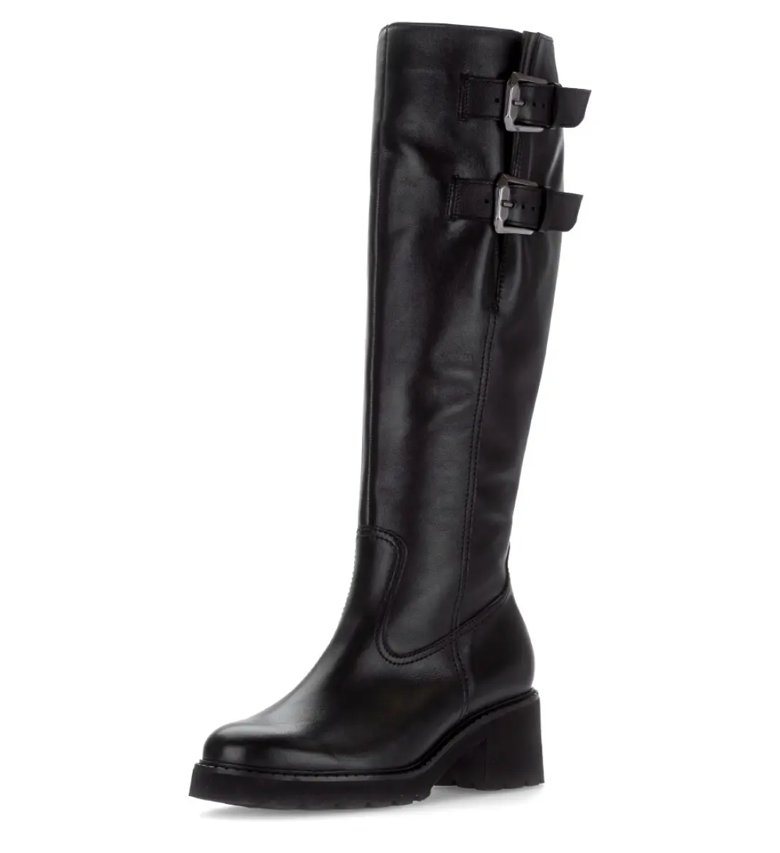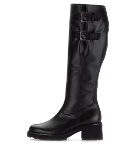 Deze lange Gabor laars van zwart kalfsleer in wijdte G met L-vario schacht straalt elegantie uit. Het soepele leer vormt zich elegant rond de kuit, terwijl de verstelbare gespen zorgen voor een perfecte pasvorm. De blokhak biedt een stabiele lift en maakt lopen comfortabel. Het subtiel glanzende oppervlak voelt soepel aan en maakt deze laars een veelzijdige keuze bij zowel een rok als een strakke jeans. Bestel nu en stap stijlvol de herfst in.