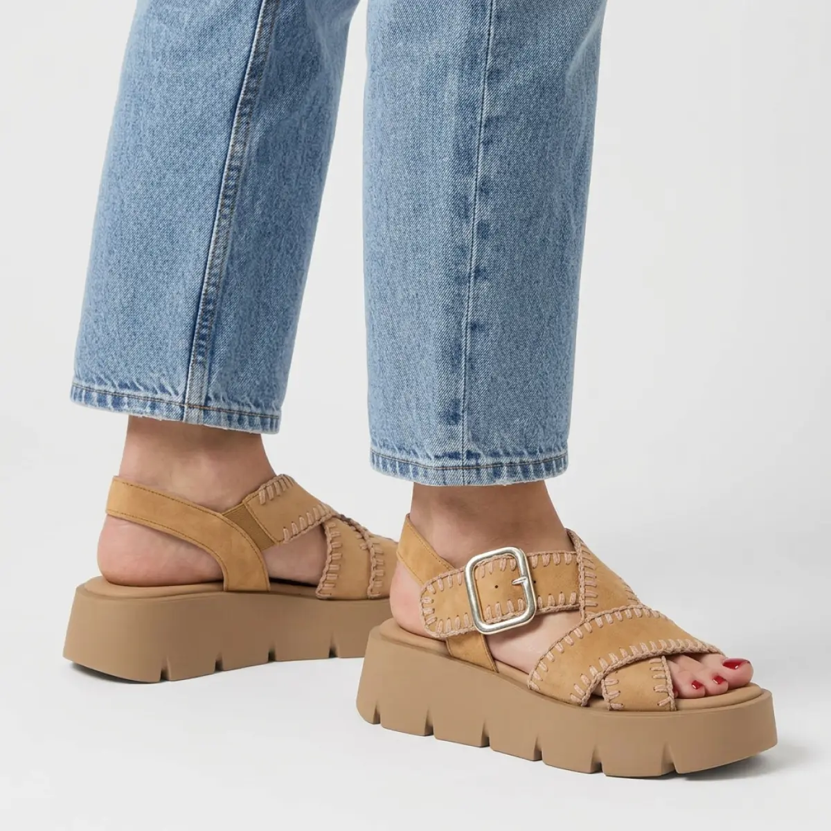 Deze Gabor sandaal van cognackleurig suède combineert een boho-touch met modern comfort. De brede kruisbandsluiting is gemaakt van zacht suède en afgewerkt met decoratieve stiksels die de sandaal een ambachtelijke, zomerse uitstraling geven. De grote gesp aan de zijkant voegt een modieus accent toe en laat je de pasvorm gemakkelijk aanpassen aan jouw voet. Dankzij de Best Fitting wijdte F geniet je van extra ruimte bij de voorvoet, waardoor de sandaal luchtig en comfortabel blijft, ook op warme dagen. Het vaste voetbed ondersteunt je voet op een zachte manier en zorgt ervoor dat je zonder moeite langere tijd comfortabel blijft stappen. De stevige plateauzool geeft de sandaal een trendy look en biedt stabiliteit en grip bij elke stap.