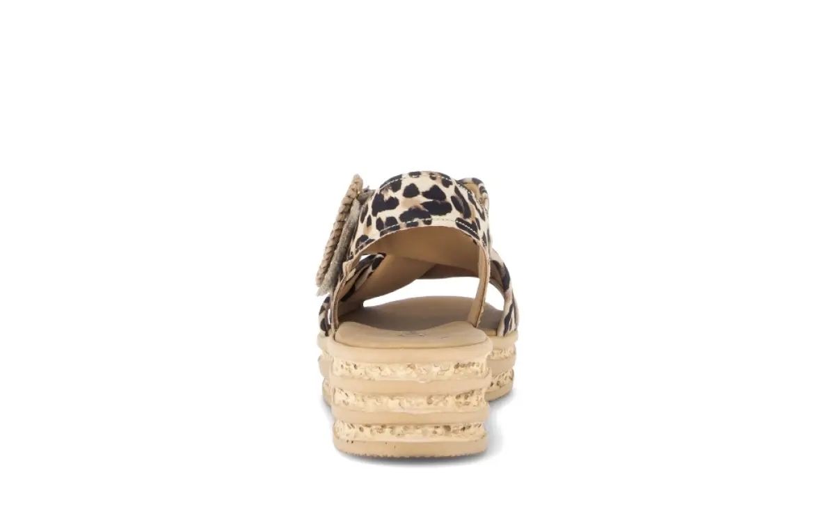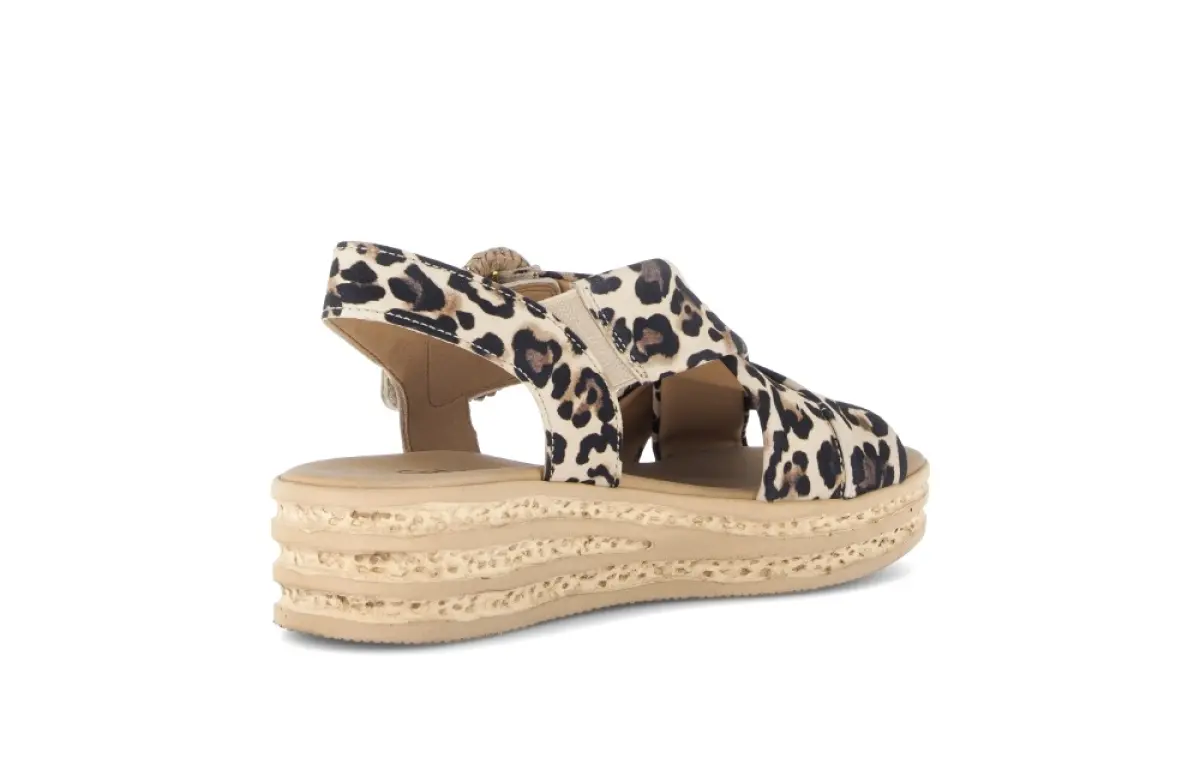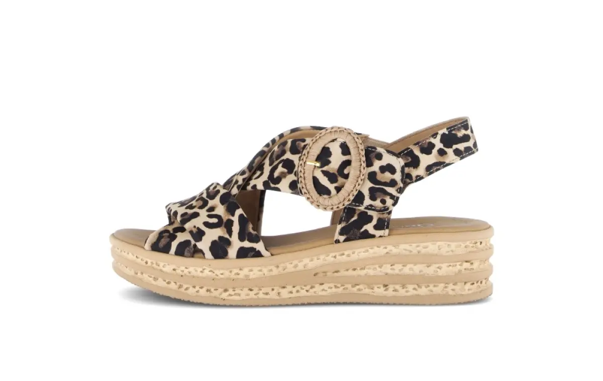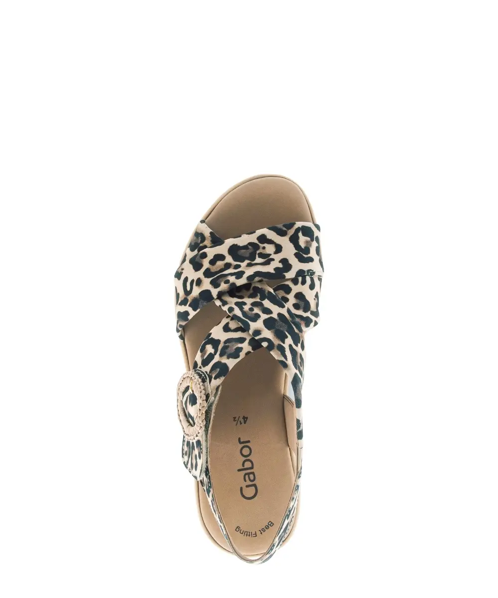 Deze Gabor sandaal van donkerbruin nubuck met luipaardprint is een stijlvolle blikvanger die mode en comfort perfect verenigt. De zachte nubuckbanden kruisen elegant over de wreef en voelen aangenaam soepel aan op de huid, terwijl de grote ronde gesp met gevlochten detail een speelse en modieuze touch toevoegt. Dankzij de Best Fitting wijdte F krijgt je voorvoet net wat extra ruimte, zodat de sandaal ook op warmere dagen prettig blijft zitten. Het vaste voetbed biedt natuurlijke ondersteuning en voelt zacht aan bij elke stap, waardoor je de hele dag door licht en ontspannen loopt. De lichte sleehak met kurklookzool geeft de sandaal een zomerse, moderne uitstraling én zorgt voor stabiliteit tijdens het stappen. De luipaardprint in warme bruintinten maakt dit model ideaal voor wie graag opvalt, maar tegelijk een natuurlijke en stijlvolle look wil behouden.