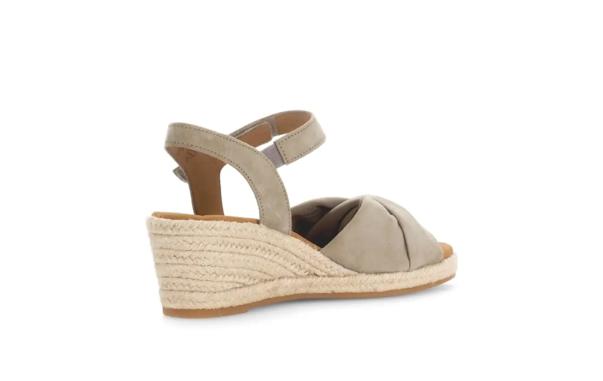 Deze beige suède sandalen van Gabor zijn een stijlvolle keuze voor de zomer. Het zachte suède en de verfijnde strik op de voorvoet geven een elegante touch, terwijl de gevlochten espadrille sleehak zorgt voor een natuurlijke en zomerse uitstraling. De verstelbare enkelbandjes bieden een perfecte pasvorm en ultiem draagcomfort.