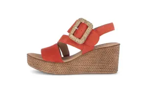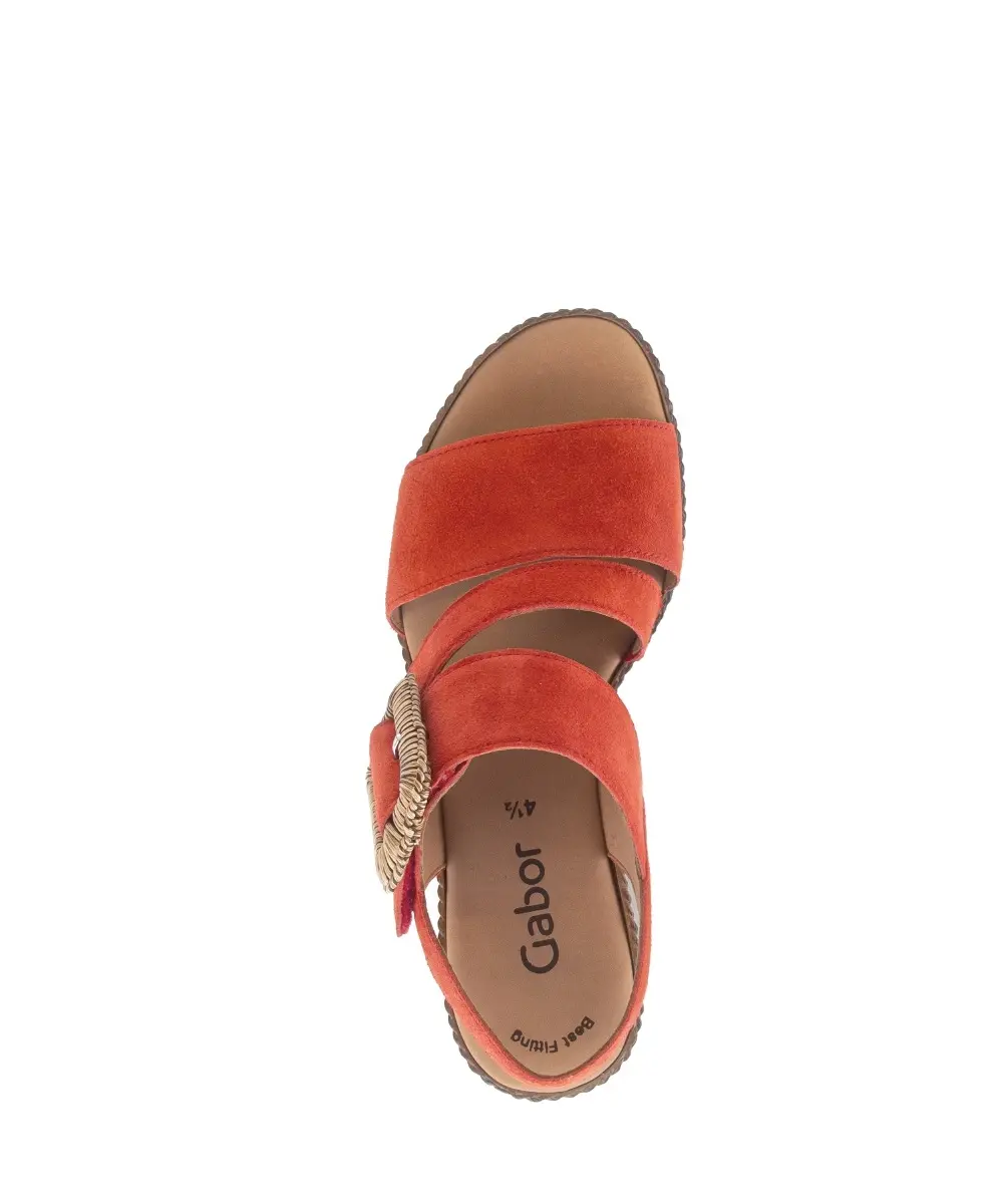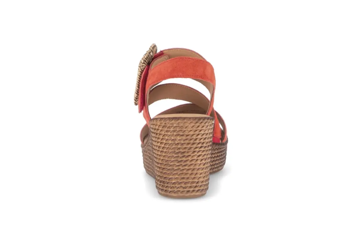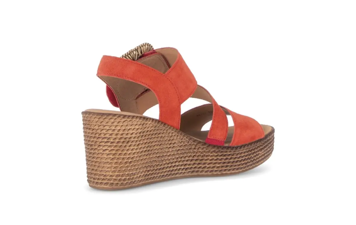Deze Gabor sleehak van rood velours brengt kracht, vrouwelijkheid en zomerse elegantie samen in één stijlvol ontwerp. De zachte velours banden voelen soepel aan en sluiten mooi rond je voet, waardoor je meteen een comfortabele pasvorm ervaart. De brede, gevlochten gesp geeft de sandaal een speels en modieus accent dat het geheel extra karakter geeft. Dankzij de Best Fitting wijdte F krijgt je voorvoet meer ruimte, wat het draagcomfort aanzienlijk verhoogt, ook op warme dagen. Het vaste voetbed is zacht gevoerd en ondersteunt de voet op natuurlijke wijze, zodat je moeiteloos de hele dag kunt stappen. De warme rode tint zorgt voor een opvallende, frisse look en combineert prachtig met natuurlijke tinten, wit of denim. Deze sleehak is ideaal voor een kleurrijke, elegante zomeroutfit.
