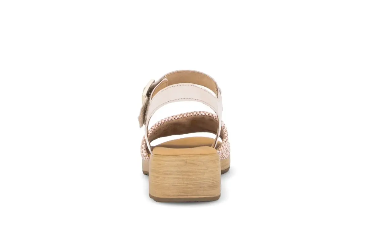 Deze sandaal van roze nappaleer van Gabor is een elegante keuze voor warme dagen waarop je comfort en stijl graag combineert. Het zachte nappaleer voelt soepel aan en vormt zich natuurlijk naar je voet, terwijl het vaste voetbed je de hele dag door een stabiele ondersteuning biedt. Dankzij de wijdte H geniet je van een iets bredere pasvorm, ideaal als je voeten graag wat meer ruimte hebben bij warm weer. De gevlochten band vooraan geeft deze sandaal een frisse en speelse twist, terwijl de verstelbare gesp rond de enkel zorgt voor een persoonlijke omsluiting die stevig blijft zitten. De zachte rozetint met lichte glans oogt vrouwelijk en past moeiteloos bij zomerse outfits, van linnen broeken tot luchtige jurken. Zoals altijd bij Gabor is ook dit model met veel zorg en kwaliteitsmateriaal gemaakt, zodat je erop kunt vertrouwen dat het draagcomfort blijft.