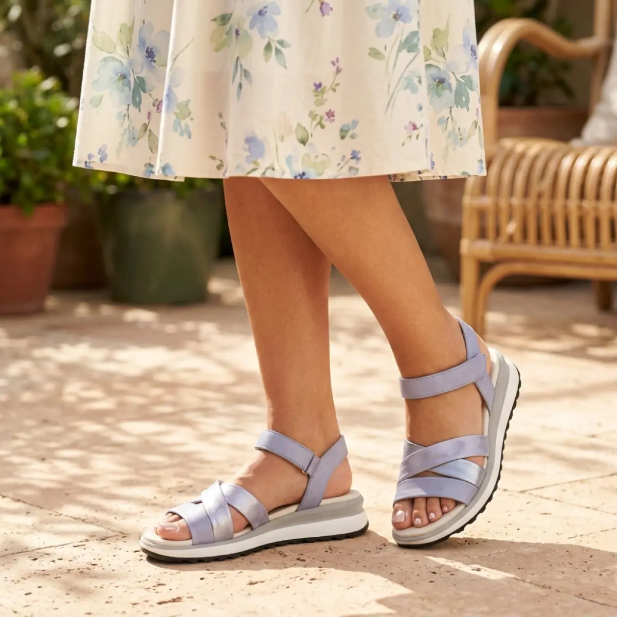Deze sandaal van blauw nappaleer van Gabor is een frisse en comfortabele keuze voor zonnige dagen waarop je stijl en gemak wil combineren. Het soepele nappaleer voelt zacht aan en vormt zich mooi naar je voet, terwijl het vaste voetbed zorgt voor een stabiele ondersteuning tijdens elke stap. Dankzij de wijdte G ervaar je net dat beetje extra ruimte, ideaal wanneer je voeten wat meer bewegingsvrijheid nodig hebben. De elegante kruisbanden geven het ontwerp een vrouwelijke uitstraling en sluiten zacht aan op je voet. De klittenbandsluiting rond de enkel maakt het makkelijk om de pasvorm snel en precies af te stemmen op wat jij prettig vindt. Zoals altijd bij Gabor is dit model met zorg gemaakt, met aandacht voor detail en hoogwaardige materialen, zodat je kunt rekenen op duurzame kwaliteit en dagelijks draagcomfort.