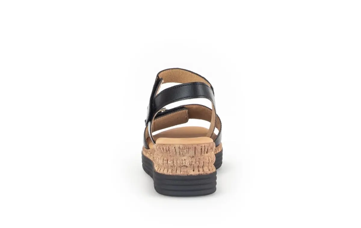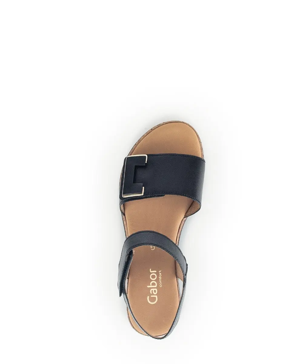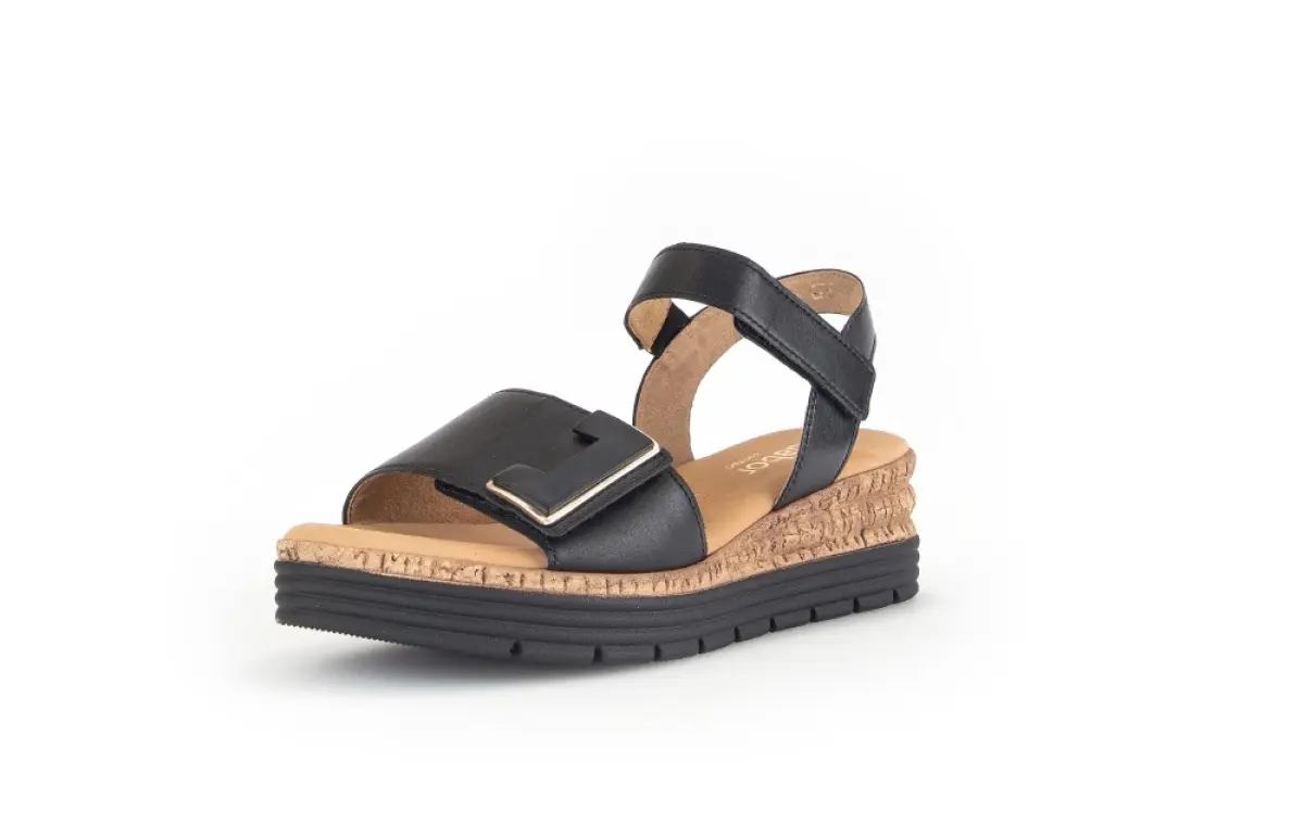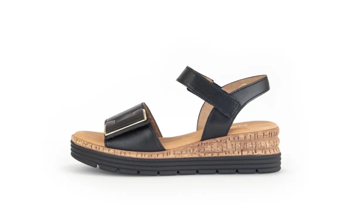 Deze zwarte sandaal van nappaleer voelt zacht en soepel aan waardoor je meteen merkt dat dit een comfortabele en stijlvolle keuze is voor warme dagen. Het fijne nappaleer ligt prettig tegen de huid en geeft de sandaal een luxueuze uitstraling. De stevige kurklookzool met zwarte afwerking zorgt voor een moderne en natuurlijke toets en biedt tegelijk een zachte demping zodat je de hele dag ontspannen rondstapt. Dankzij de wijdte G krijgt je voet extra ruimte waardoor de pasvorm luchtig en comfortabel blijft. De brede band met opvallende gesp aan de voorzijde geeft de sandaal een eigentijdse look terwijl de verstelbare enkelband je toelaat om de pasvorm precies af te stemmen op wat jij prettig vindt. Door de combinatie van zachte materialen, moderne details en een stabiele afwerking wordt dit een veelzijdige sandaal die je zomerse outfit een elegante uitstraling geeft.