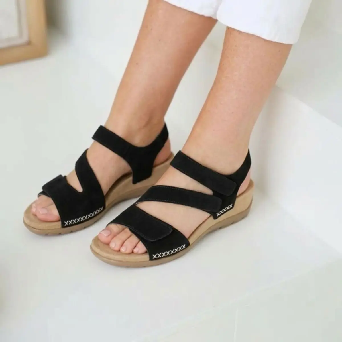 Deze Gabor sandaal van zwart nubuck combineert comfort met een tijdloze, stijlvolle look. Het zachte nubuck voelt soepel aan en vormt zich mooi naar je voet, waardoor de sandaal meteen luxueus aanvoelt. Dankzij de drie verstelbare klittenbandsluitingen stel je de pasvorm precies af zoals jij het wilt, met extra steun op de juiste plaatsen. Het vaste voetbed geeft stabiliteit en blijft ook tijdens lange dagen comfortabel aanvoelen. Door de wijdte F (Best Fitting) krijgt de voorvoet iets meer ruimte, wat zorgt voor een natuurlijke en ontspannen pasvorm. De zwarte kleur maakt deze sandaal veelzijdig en makkelijk te combineren met zowel casual outfits als elegante zomerse looks.