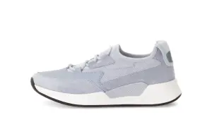 Deze lichtblauwe Gabor Rollingsoft sneaker combineert sportieve elegantie met ultiem draagcomfort. De combinatie van kalfsleer en ademend mesh zorgt voor een luxe uitstraling en een heerlijk luchtig gevoel. Dankzij het handige instapmodel en de elastische afwerking sluit de schoen perfect aan. De sierveters geven de sneaker een modieuze uitstraling, terwijl de lichte, dempende zool je voeten optimaal ondersteunt. Combineer deze sneaker met een witte jeans voor een frisse, casual look of draag hem met een mooie rok voor een sportief-chique uitstraling. Een stijlvolle keuze voor wie comfort en mode moeiteloos wil combineren.