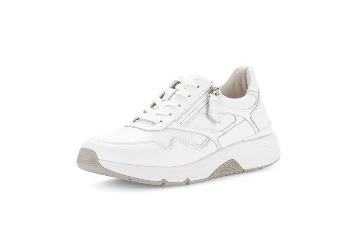 Deze witte Gabor sneaker van kalfsleer is een stijlvolle essential die moeiteloos combineert met elke outfit. Het gladde kalfsleer voelt zacht en soepel aan en geeft de basket een verfijnde, moderne uitstraling. Dankzij de ritssluiting naast de veters trek je dit model eenvoudig aan en uit, ideaal voor dagelijks gebruik. Het losse voetbed zorgt voor optimaal draagcomfort en maakt het mogelijk om eigen inlegzolen te gebruiken. Met wijdte G sluit de sneaker mooi aan op de voet en biedt hij voldoende ruimte zonder te knellen. De subtiele belijning en ton-sur-ton details creëren een tijdloze look die past bij zowel casual als sportieve stijlen. Perfect voor wie houdt van comfort en stijl in één.