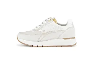 Gun jezelf het comfort van deze stijlvolle beige Gabor sneakers met subtiele metallic gouden accenten. Ze komen met klassiek witte veters en bieden een aangename pasvorm dankzij de G-wijdte. Perfect voor elke dag, waar je ook heen gaat.