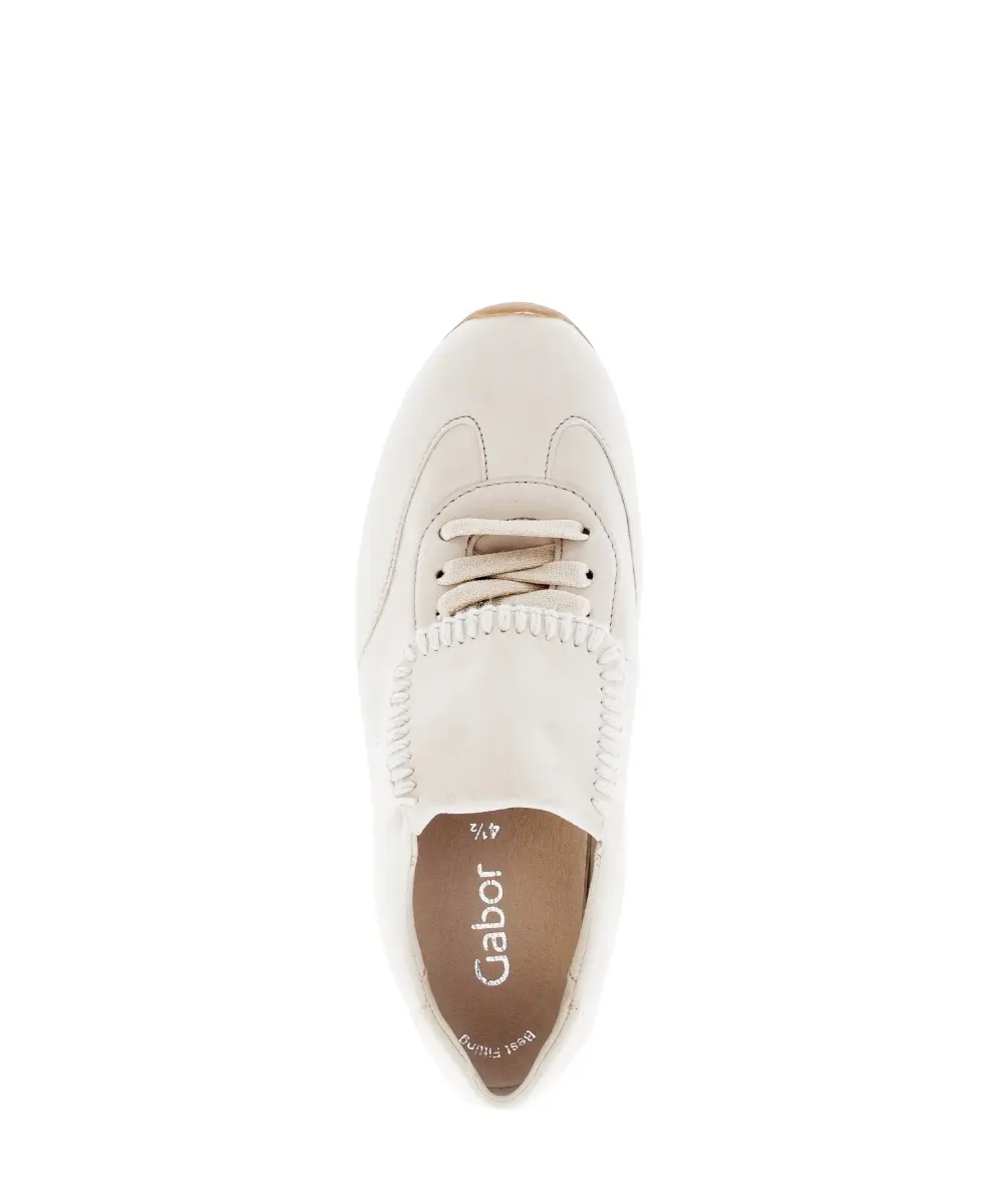 Deze Gabor basket van beige suède biedt een mooie combinatie van stijl, comfort en kwaliteit. Het zachte suède geeft de basket een elegante en natuurlijke uitstraling en voelt aangenaam soepel aan. Dankzij het losse voetbed kun je dit model makkelijk aanpassen aan je eigen inlegzolen wat zorgt voor extra gemak en persoonlijk comfort. De wijdte F (Best Fitting) geeft je een fijne pasvorm met net wat meer ruimte bij de bal van de voet zonder dat de basket haar slanke lijn verliest. De flexibele zool zorgt voor een soepele afwikkeling van de voet waardoor deze basket ideaal is voor dagelijks gebruik. Zoals je van Gabor gewend bent, is ook dit model met veel aandacht voor detail gemaakt zodat stijl en draagcomfort mooi samengaan.