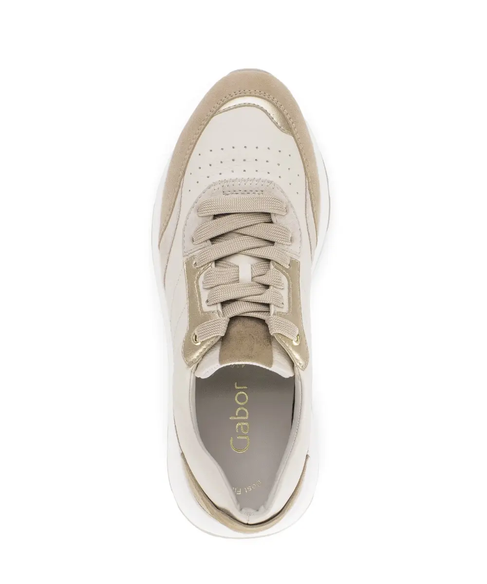 Deze Gabor basket van beige suède is een elegante en veelzijdige keuze voor dagelijks gebruik. Het zachte suède voelt soepel aan en vormt zich prettig naar je voet, waardoor je meteen geniet van een luxe en comfortabel draaggevoel. Dankzij het losse voetbed kun je zonder moeite je eigen inlegzolen gebruiken voor extra ondersteuning en een persoonlijke pasvorm. De wijdte F (Best Fitting) geeft iets meer ruimte bij de voorvoet. Dat maakt deze basket ook bij langer dragen aangenaam. De lichte zool met subtiele demping zorgt voor een soepele afwikkeling en een fijn loopcomfort. De zachte beigetint laat zich makkelijk combineren met lichte voorjaarskleuren en past bij zowel een casual outfit als een meer stijlvolle look. Deze Gabor basket biedt een mooie balans tussen mode, kwaliteit en dagelijks gemak.