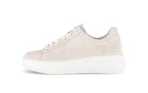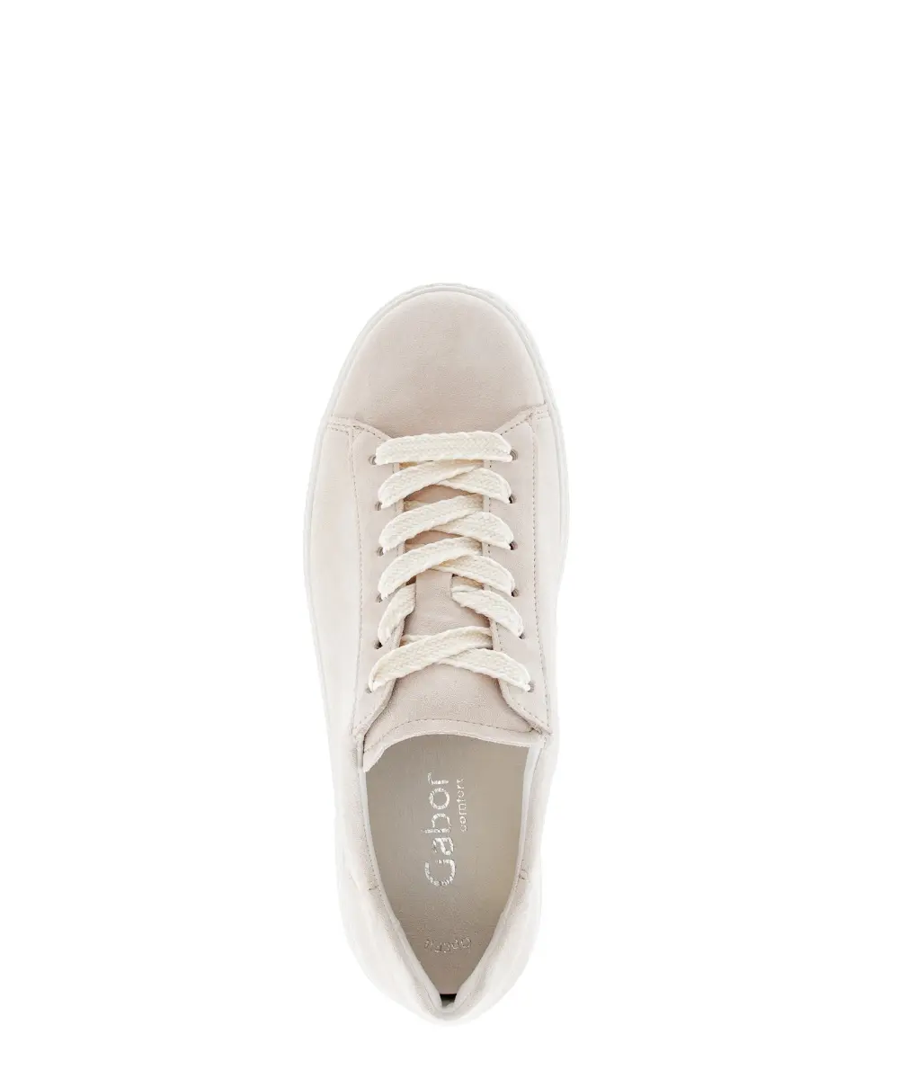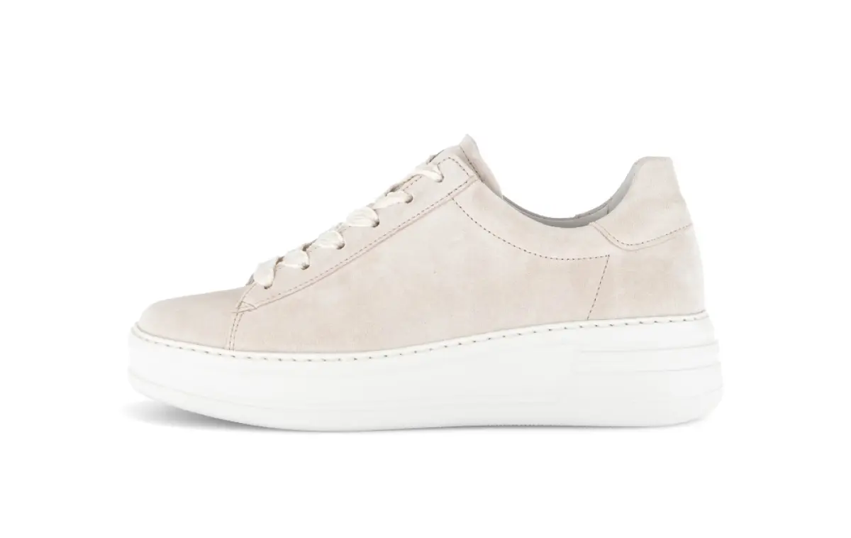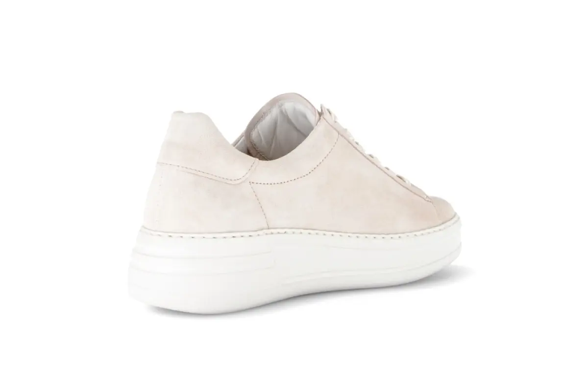 Deze beige basket van Gabor is de perfecte combinatie van eenvoud, comfort en stijl. Het zachte velours zorgt voor een luxueuze uitstraling en voelt soepel aan rond je voet, terwijl de moderne plateauzool een subtiele verhoging biedt zonder in te boeten aan draaggemak. De lichte tint en cleane lijnen maken deze basket moeiteloos te combineren met elke outfit, van casual tot chic. Dankzij de wijdte G ervaar je een comfortabele pasvorm die mooi aansluit zonder te knellen, en het losse voetbed laat je toe om eigen inlegzolen te gebruiken voor extra ondersteuning. De lichte, flexibele zool met zachte demping geeft je voeten stabiliteit en comfort bij elke stap. Ideaal voor lange dagen onderweg of een stijlvolle casual look.