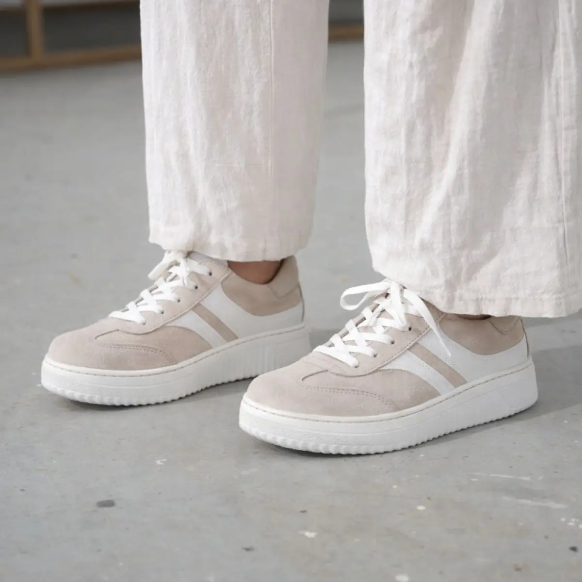 Deze beige sneaker van velours is een stijlvolle en comfortabele keuze voor dagelijks gebruik. Het zachte velours voelt luxueus aan en vormt zich soepel rond je voet, terwijl de witte accenten zorgen voor een frisse en moderne uitstraling. De lichte tint maakt deze basket makkelijk te combineren met zomerse outfits of een casual jeans. Dankzij het losse voetbed kun je moeiteloos je eigen inlegzolen gebruiken voor extra ondersteuning. De wijdte K biedt meer ruimte en zorgt voor een ontspannen pasvorm, ideaal als je bredere voeten hebt of graag wat meer bewegingsvrijheid voelt. De stevige en toch lichtgewicht zool geeft een fijne demping en stabiliteit bij elke stap, waardoor je de hele dag comfortabel blijft lopen. Deze beige Gabor sneaker is de perfecte mix van elegantie, kwaliteit en draagcomfort.