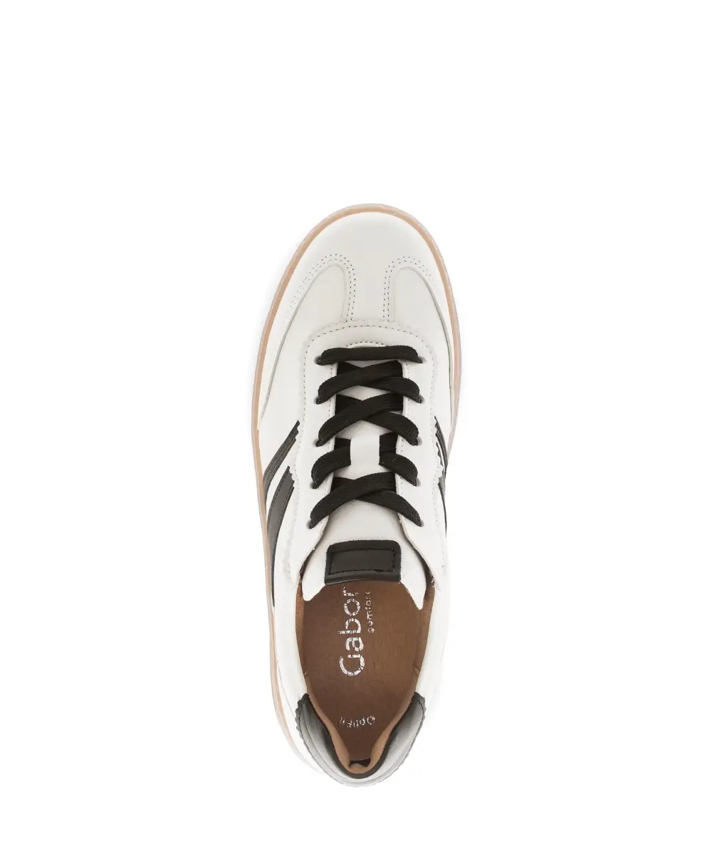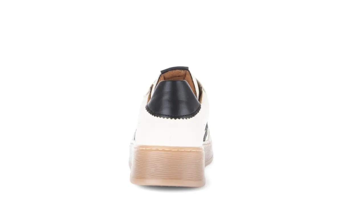 Deze beige Gabor basket van nappaleer heeft een sportieve en moderne uitstraling dankzij de contrasterende zwarte details. Het zachte leer voelt soepel aan en de lichte tint maakt deze basket veelzijdig en makkelijk te combineren met zowel casual outfits als meer geklede looks. De caramelkleurige zool geeft het ontwerp een eigentijdse twist en biedt tegelijk een comfortabele loopervaring dankzij de dempende werking. De wijdte G zorgt voor een fijne pasvorm voor de gemiddelde voet, terwijl het losse voetbed ruimte biedt om eigen inlegzolen te gebruiken. Het soepele nappaleer vormt zich prettig naar je voet en het gladde binnenwerk voelt zacht en ondersteunend aan. Of je nu kiest voor een relaxte jeans of een stijlvolle pantalon, deze beige Gabor basket voegt altijd een vleugje comfort en elegantie toe aan je look.