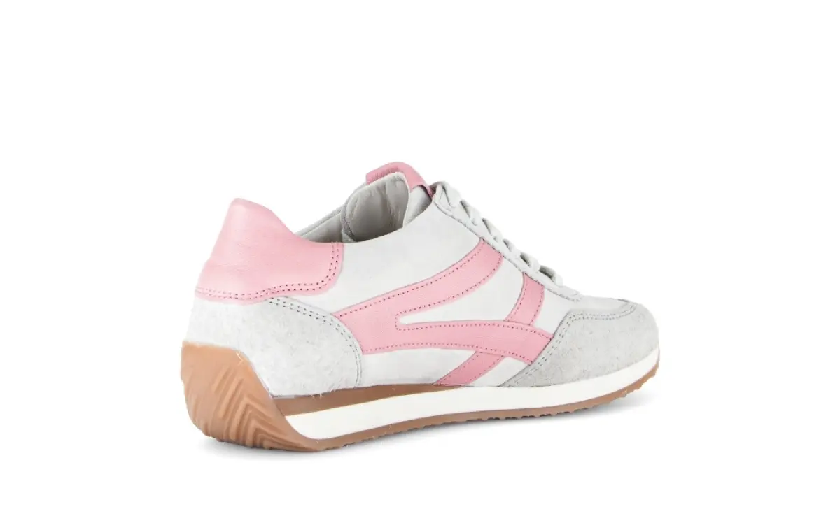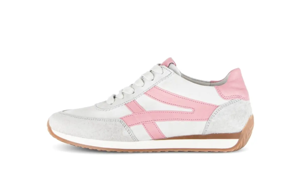 Deze muisgrijze Gabor basket van velours combineert een frisse uitstraling met subtiele vrouwelijkheid. Het zachte velours voelt soepel aan en vormt zich prettig naar je voet. De roze accenten geven de basket een zachte en moderne touch die mooi past bij lichte voorjaarskleuren. De luchtige tinten maken dit model ideaal voor een casual outfit of een ontspannen weekendlook. Het losse voetbed zorgt voor extra comfort en maakt de basket geschikt voor eigen inlegzolen. Dankzij de wijdte H ervaar je meer ruimte bij de voorvoet, wat prettig is voor een iets bredere voet. De flexibele zool ondersteunt elke stap en voelt licht aan. Deze basket laat zich makkelijk combineren met jeans, linnen broeken of een eenvoudige jurk.
