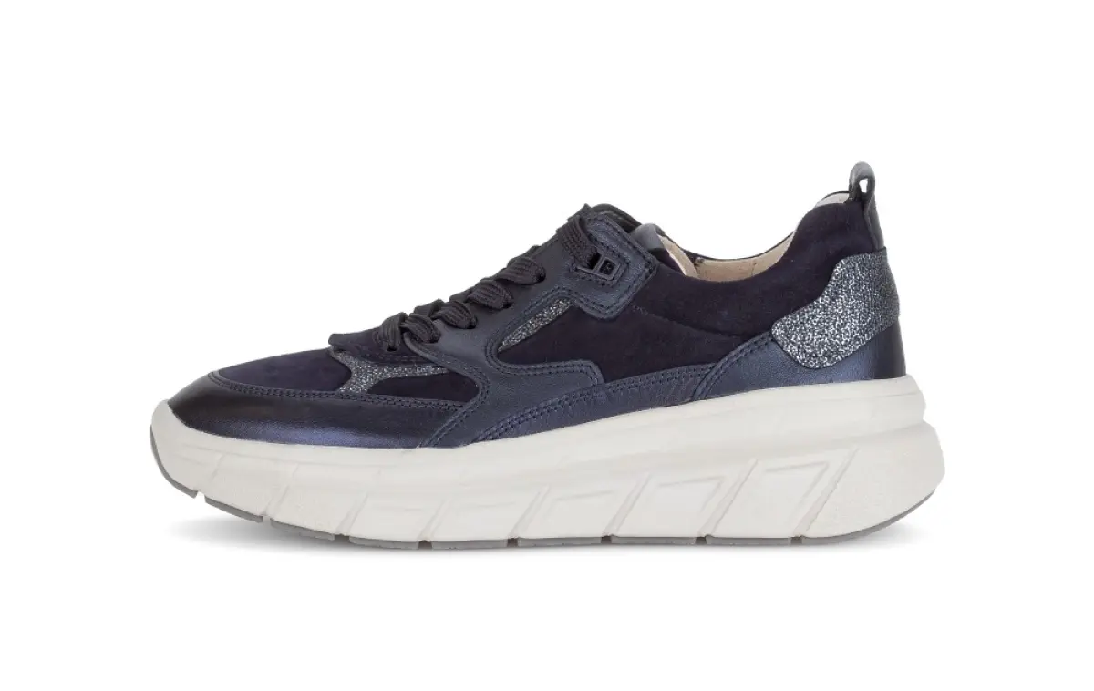 Tijdloos, comfortabel en verrassend veelzijdig, deze Gabor sneaker in nachtblauw suède is een ware must-have voor je garderobe. De combinatie van diepe blauwtinten met glanzende accenten geeft elke look een subtiele luxe uitstraling. De stevige zool biedt extra stabiliteit, ideaal voor lange dagen onderweg. Draag hem onder een jeans of combineer hem stijlvol met een jurk. De wijdte F (Best Fitting) pasvorm biedt extra ruimte bij de bal van de voet, wat bijdraagt aan moeiteloos loopcomfort. Shop nu dit populaire model en stap met zelfvertrouwen de dag in.