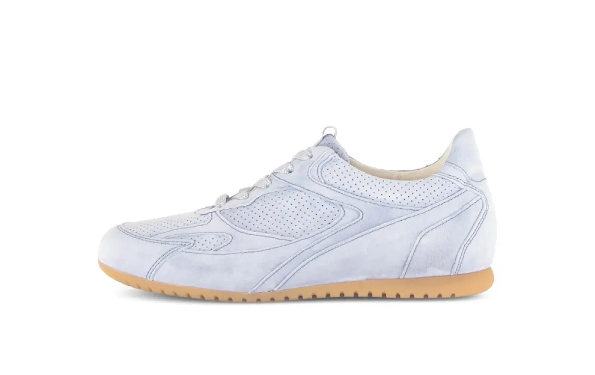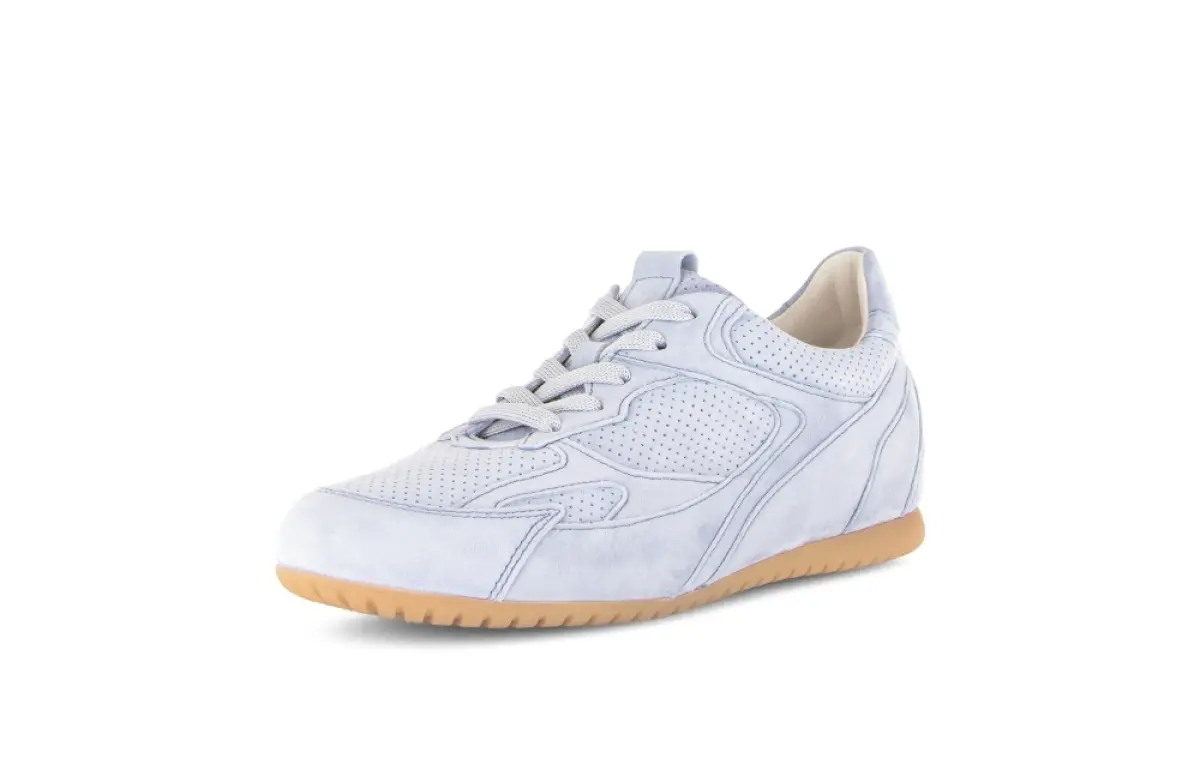 Deze skyblauwe Gabor basket van suède voelt licht en comfortabel aan. Het zachte suède geeft het model een verfijnde uitstraling. De geperforeerde details zorgen voor extra ventilatie en houden je voeten fris tijdens warme dagen. Het losse voetbed biedt ondersteuning en maakt het eenvoudig om je eigen inlegzolen te gebruiken. Dankzij de wijdte H geniet je van meer ruimte aan de voorvoet. Dat zorgt voor een ontspannen pasvorm zonder drukpunten. De lichte zool geeft een soepele afwikkeling en biedt goede demping bij elke stap. Deze basket in de kleur sky past mooi bij een casual outfit en geeft je look een zachte, elegante touch.