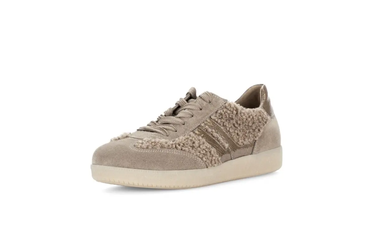 Deze Gabor sneaker van beige velour combineert stijl met een vleugje zachtheid dankzij de speelse teddy afwerking. De licht glanzende accenten geven het geheel een frisse, vrouwelijke uitstraling. Dankzij de lichte zool en zachte materialen is dit model heerlijk draagbaar, ideaal voor dagelijks gebruik. Perfect te combineren met jouw najaarsgarderobbe. Een must voor vrouwen van die comfort én elegantie willen. Gun jezelf dit modieuze comfort en bestel vandaag nog jouw nieuwe favoriet.
