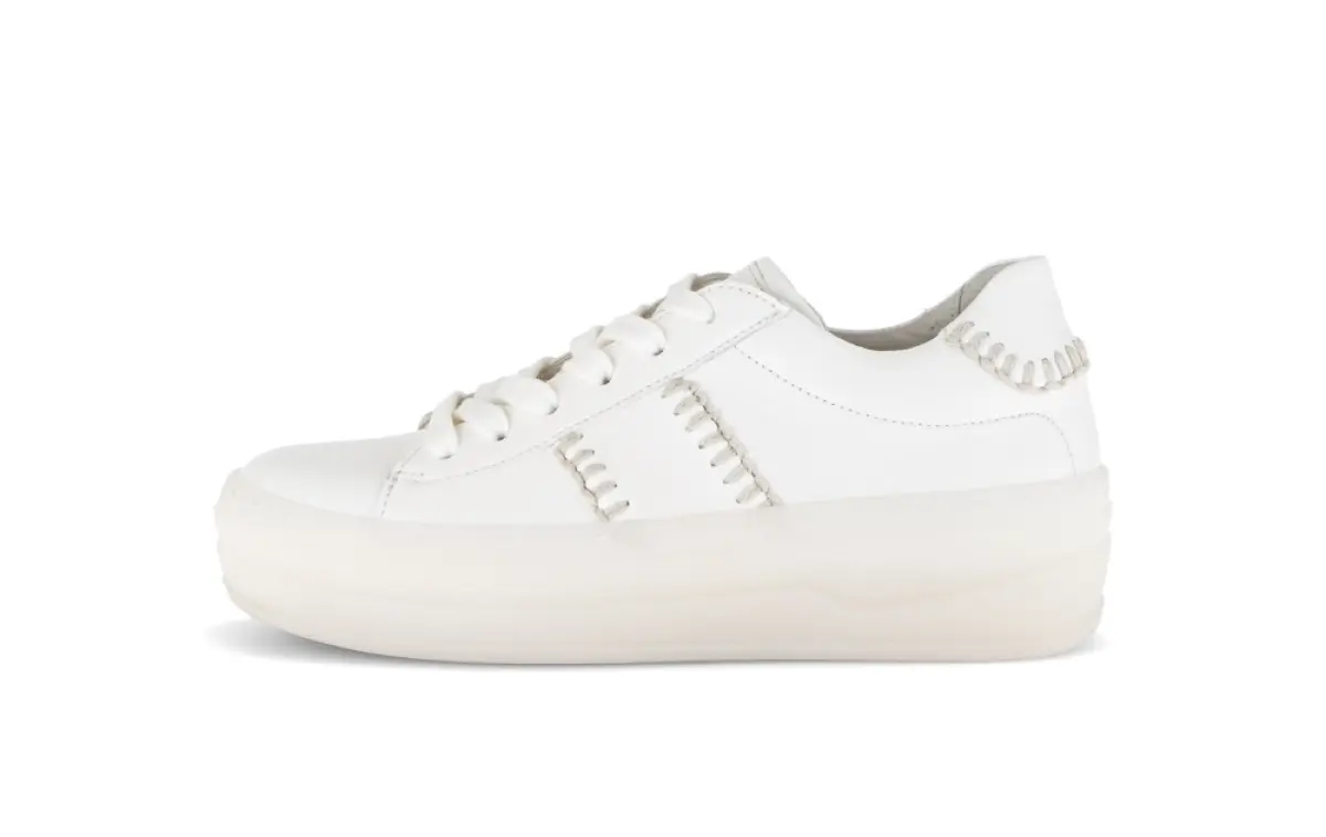 Deze basket van wit nappaleer van Gabor is een moderne en stijlvolle keuze voor wie comfort en kwaliteit belangrijk vindt. Het zachte nappaleer voelt soepel aan en vormt zich prettig rond je voet, terwijl de decoratieve stiksels langs de randen zorgen voor een verfijnde en eigentijdse uitstraling. De opvallende plateauzool geeft deze basket een trendy look en biedt tegelijk extra demping en stabiliteit bij elke stap. Dankzij het losse voetbed kan je eenvoudig je eigen inlegzolen gebruiken voor een persoonlijke ondersteuning. De wijdte F (Best Fitting) geeft iets meer ruimte aan de voorvoet, waardoor je de basket ook na een lange dag comfortabel blijft dragen. De frisse witte kleur laat zich moeiteloos combineren met elke outfit, van casual denim tot een lichte zomerlook. Zoals altijd bij Gabor geniet je hier van kwaliteit, draagcomfort en een pasvorm waarop je elke dag kunt vertrouwen.