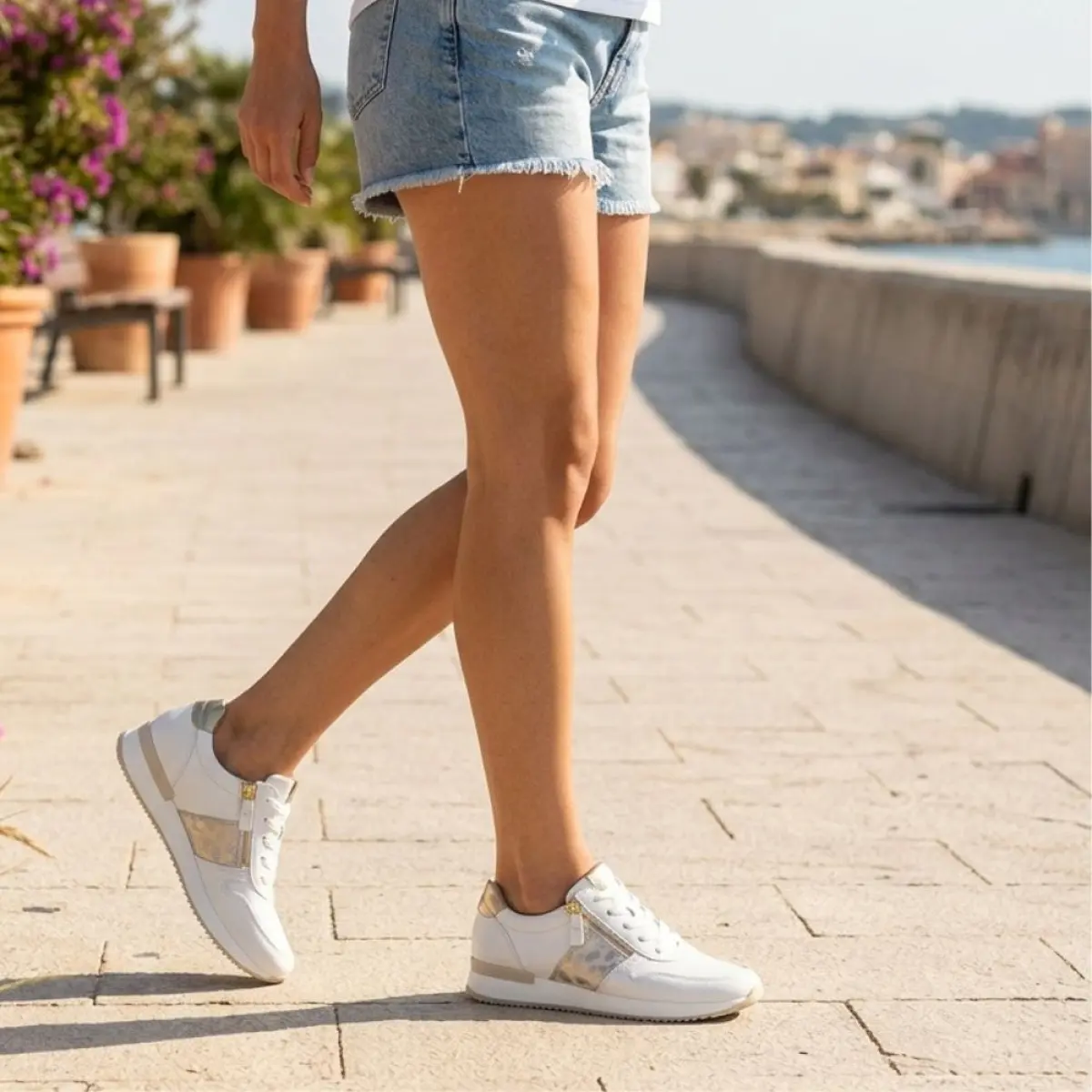 Deze sneaker van wit nappaleer van Gabor straalt elegante sportiviteit uit en voelt dankzij het soepele leer zacht en comfortabel aan rond je voet. De subtiele goudkleurige accenten bij de hiel en de rits geven het model een luxueuze, moderne touch, terwijl de lichte zool zorgt voor een frisse uitstraling en een fijne demping bij elke stap. Dankzij het losse voetbed kan je eenvoudig je eigen inlegzolen gebruiken voor extra ondersteuning. De wijdte F (Best Fitting) biedt iets meer ruimte aan de voorvoet, waardoor je de sneaker de hele dag comfortabel draagt. De handige ritssluiting maakt aan- en uittrekken snel en makkelijk. De tijdloze witte kleur past moeiteloos bij zowel casual outfits als een stijlvolle, geklede look. Zoals altijd bij Gabor geniet je van kwaliteit, draagcomfort en een pasvorm waarop je kunt rekenen.