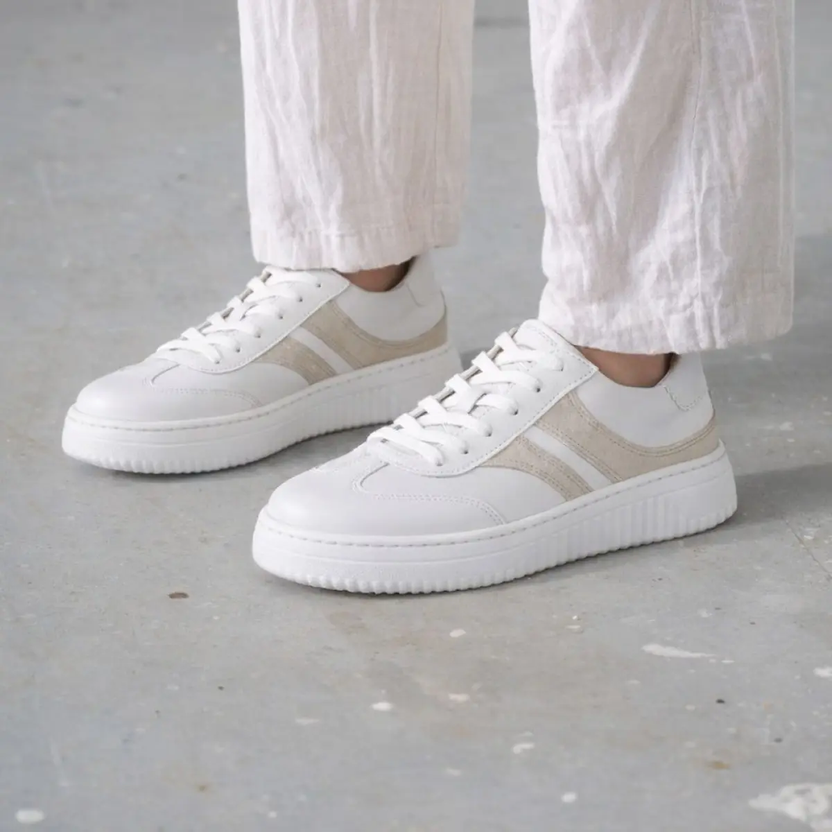 Deze witte Gabor sneaker combineert een sportieve uitstraling met verfijnde details. Het gladde nappaleer voelt zacht en soepel aan, terwijl de subtiele beige suèdedetails langs de zijkant zorgen voor een frisse, stijlvolle touch. De stevige plateauzool geeft deze basket een moderne look en biedt tegelijk extra comfort en stabiliteit tijdens het stappen. Dankzij de wijdte K geniet je van een royale pasvorm, ideaal als je wat meer ruimte aan de voorvoet nodig hebt. Het losse voetbed maakt het eenvoudig om je eigen inlegzolen te gebruiken, en de lichte zool zorgt voor een goede demping bij elke beweging. Deze witte Gabor sneaker is een veelzijdige keuze voor dagelijks gebruik en past moeiteloos bij zowel casual als meer verfijnde outfits.