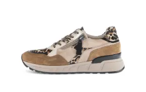 Deze sportieve Gabor sneaker in zwart kalfsleer combineert een stoere uitstraling met het comfort van wijdte H, ideaal voor de voet die nét wat meer ruimte nodig heeft. De glanzende metallic details zorgen voor een frisse twist, terwijl de comfortabele zool deze sneaker perfect maakt voor dagelijks gebruik. Dankzij de handige ritssluiting trek je de schoen eenvoudig aan en uit. De licht verhoogde zool biedt extra steun ,zonder in te leveren op loopgemak. Kies voor stijl én comfort en bestel direct jouw paar.