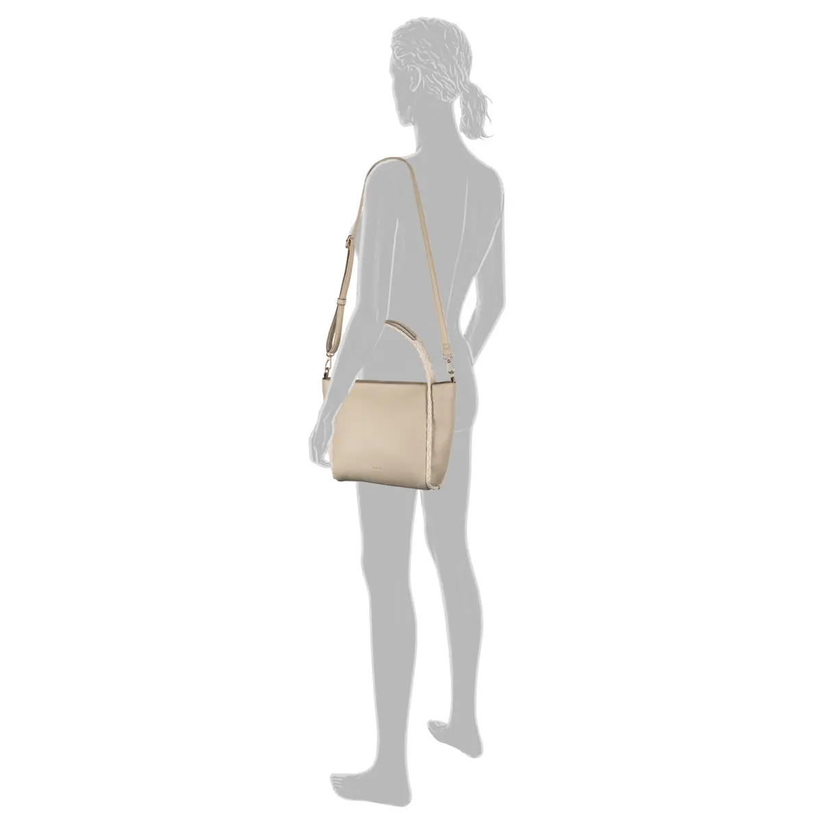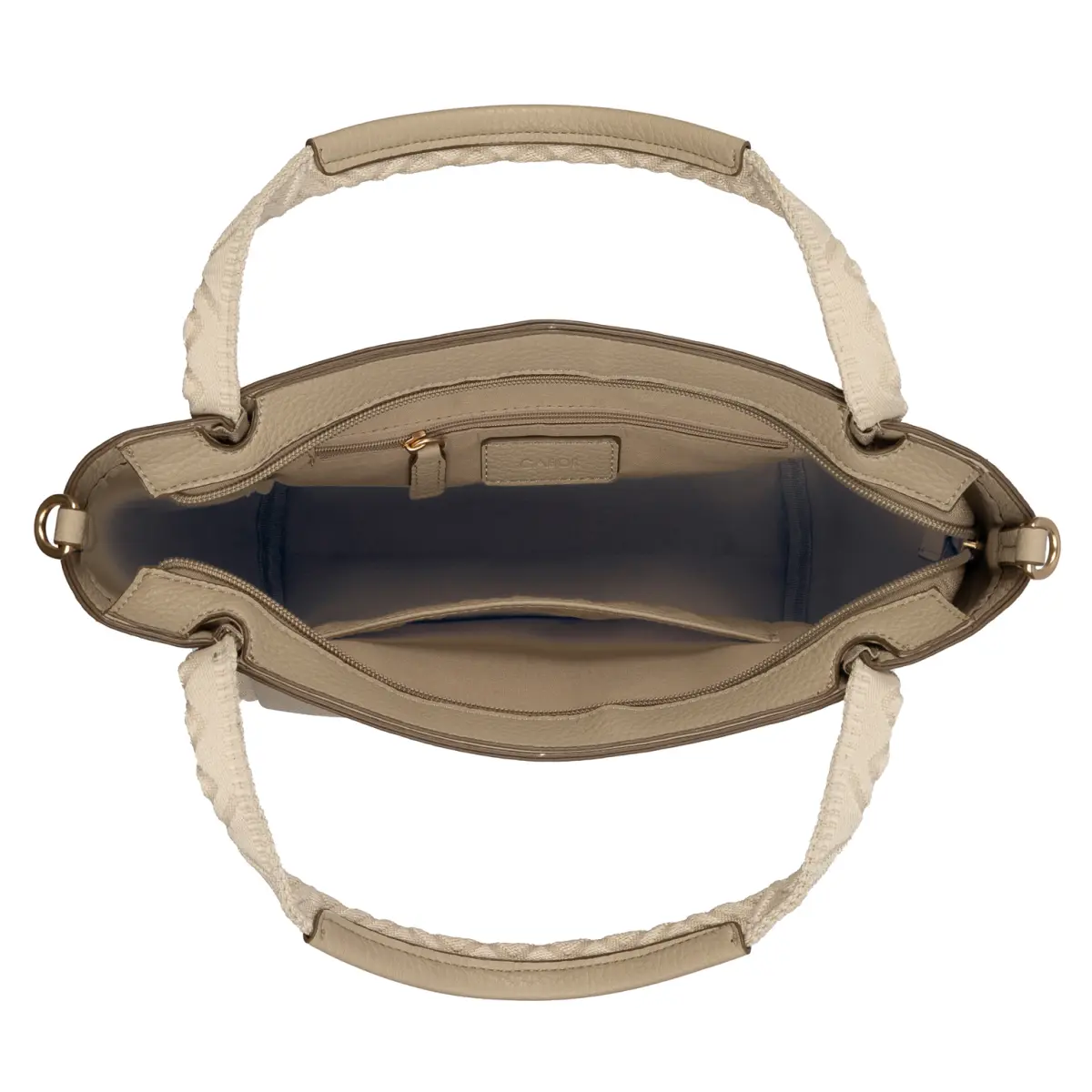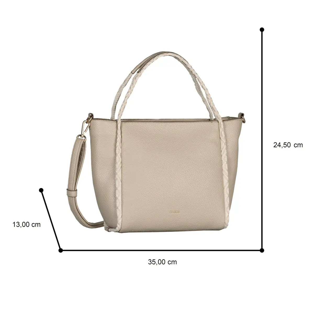 Deze beige Gabor tas combineert rustige elegantie met praktische veelzijdigheid. Het zachte, lichtkorrelige materiaal voelt aangenaam aan en geeft de tas een verfijnde uitstraling, terwijl de gevlochten handvatten zorgen voor een vrouwelijke, stijlvolle touch. Met een formaat van 35 × 13 × 24,5 cm heb je ruim voldoende plaats voor al je dagelijkse essentials, zonder dat de tas te groot aanvoelt. Het hoofdvak sluit veilig met een rits en binnenin vind je overzichtelijke vakjes voor je telefoon, sleutels en kleine accessoires. Aan de achterkant bevindt zich een extra ritsvak voor spullen die je snel bij de hand wilt hebben. Dankzij de afneembare en verstelbare schouderriem draag je de tas comfortabel over de schouder of crossbody. De korte handvatten bieden daarnaast een elegante draagoptie in de hand. Deze beige Gabor tas is een tijdloze keuze die elke outfit een stijlvolle, dagelijkse verfijning geeft.