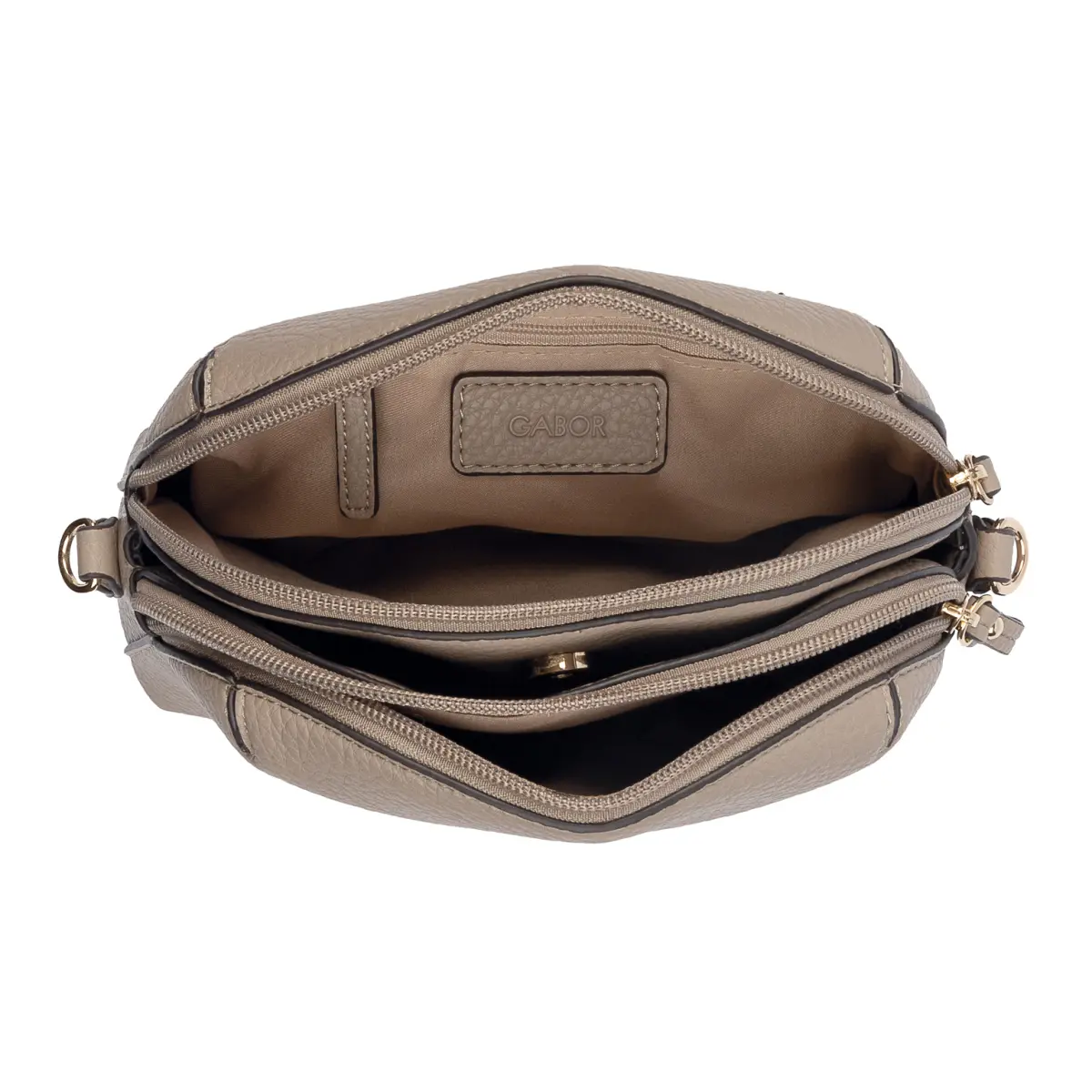 Deze compacte Gabor schoudertas in taupe is ideaal wanneer je een lichte, elegante en praktische tas zoekt voor dagelijks gebruik. Het zachte imitatieleer voelt soepel aan en behoudt mooi zijn vorm, terwijl de subtiele structuur de tas een verfijnde, luxueuze uitstraling geeft. Dankzij het handige formaat van 21 × 16,5 × 7 cm neem je je essentials moeiteloos mee zonder dat de tas te groot of zwaar aanvoelt. De dubbele ritssluiting opent twee afzonderlijke compartimenten, waardoor je meteen een helder overzicht hebt en alles netjes gescheiden kunt opbergen. Aan de buitenkant vind je nog een extra ritsvak voor spullen die je snel wilt terugvinden tijdens een drukke dag. De verstelbare schouderriem laat je kiezen hoe je de tas draagt: comfortabel crossbody of elegant over de schouder. Dankzij de rustige taupe tint combineer je deze tas moeiteloos met je dagelijkse outfits.