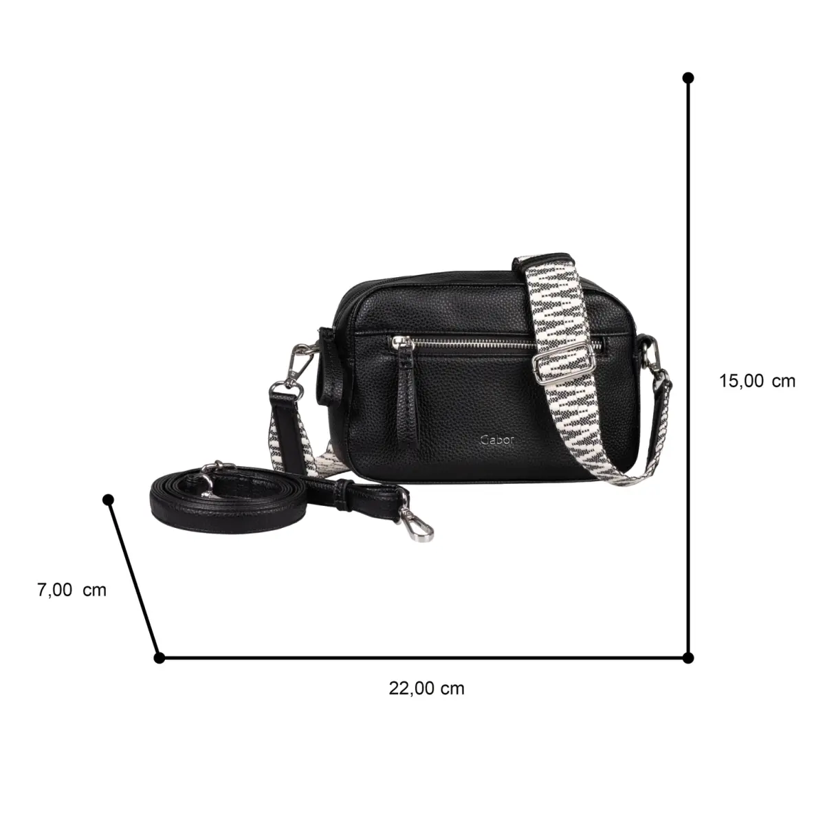 Deze zwarte Gabor crossbody tas is een tijdloze keuze die moeiteloos past bij iedere outfit. Op de website vind je dit model ook in het wit, voor een lichtere en frisse uitstraling. Het compacte formaat van 23 × 15 × 7 cm maakt deze tas ideaal voor elke dag. Niet te groot, maar ruim genoeg voor je belangrijkste spullen.