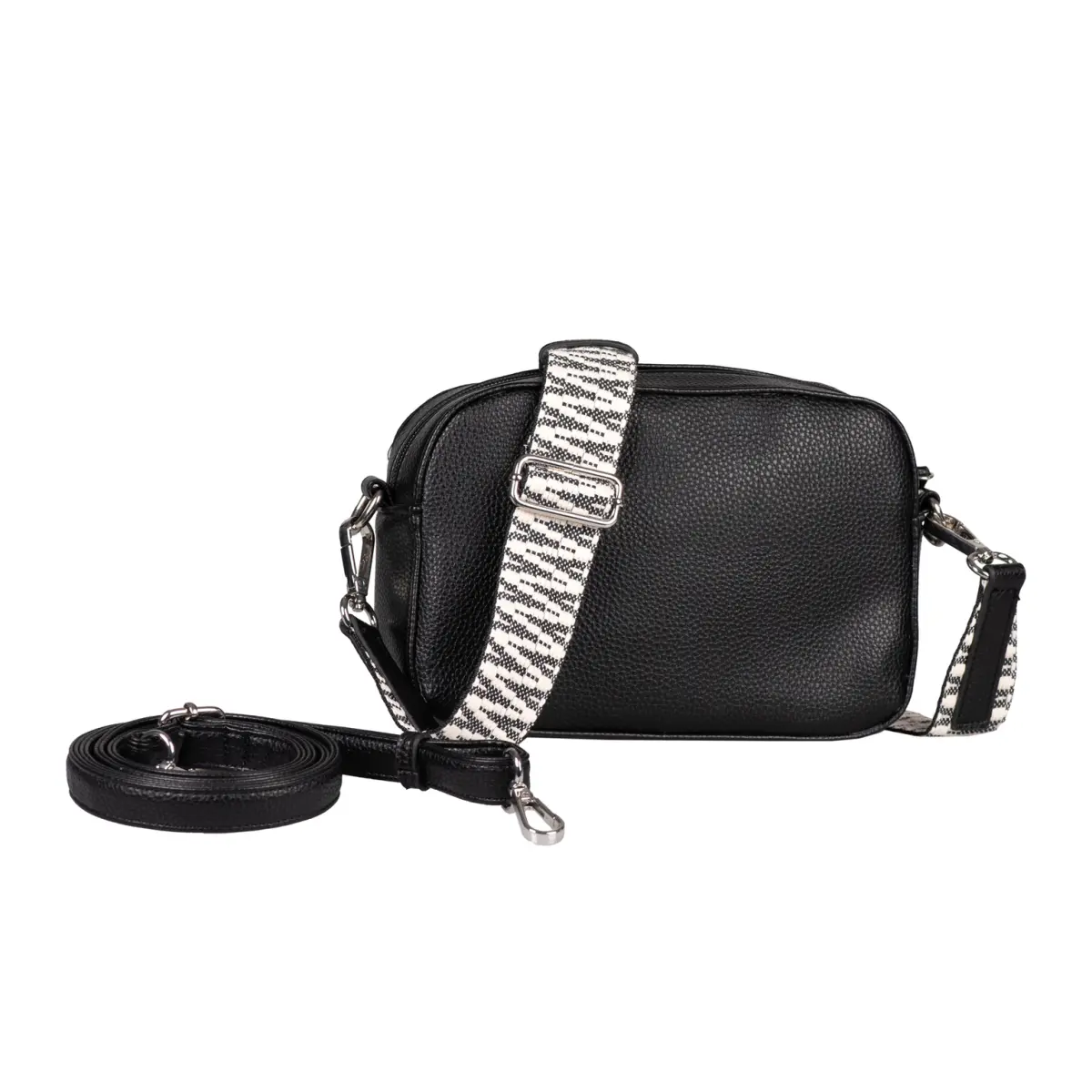 Je ontvangt twee schouderbanden. Kies voor de brede geweven band voor een sportieve look. Of ga voor de smalle verstelbare band voor een rustige, minimalistische stijl. Wisselen gaat eenvoudig, zodat je de tas aanpast aan jouw moment.